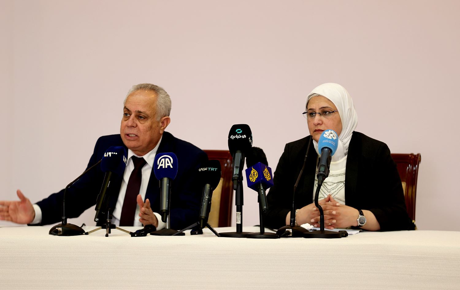 Endamên Komîteya Nivîsandina Ragihandina Destûrî ya Sûriyeyê Ebdulhemîd El-Ewak û Rêyan Kuheylan: Wêne: AA