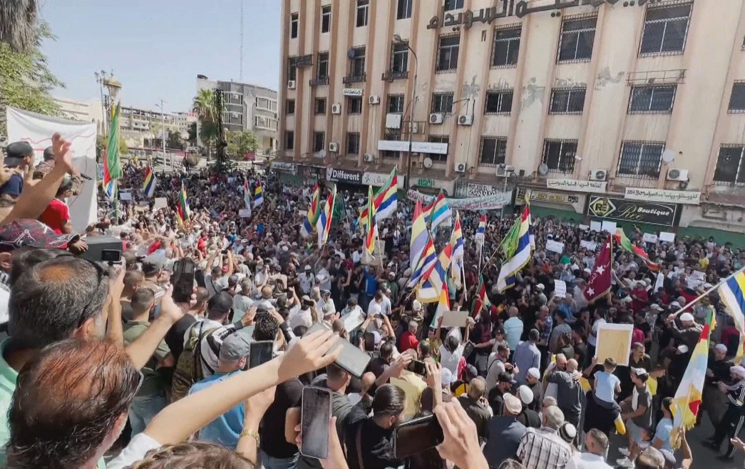Li Meydana Rûmetê ya li naverasta bajarê Siwêdayê yê başûrê Sûriyeyê bi hezaran welatiyên wê parêzgehê kom bûn û li dijî Hikûmeta Sûriyeyê dirûşm gotin.