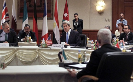 Wezîrê dervayê yê Amerîka John Kerry di despêkê civînê de ragihand: “Hemû aliyên Sûriyeyê çareseriyeke siyasî dixwazin ji bilî Esed.”