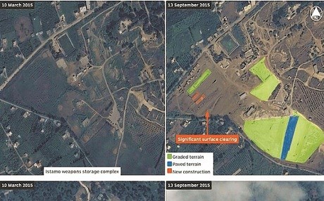 Li gorî hin wêneyên ku rojnameya Wall Street Journal belav kiriye û vedigerin nîvê vê mehê û bi rêya setelaytê hatine girtin, tê de diyar dibin ku Rûsya embarên çekan û navendên nû li Leziqiye ava kiriye, herwiha hin çadir vedane ku wek yên Artêşa Rûsyê ne.