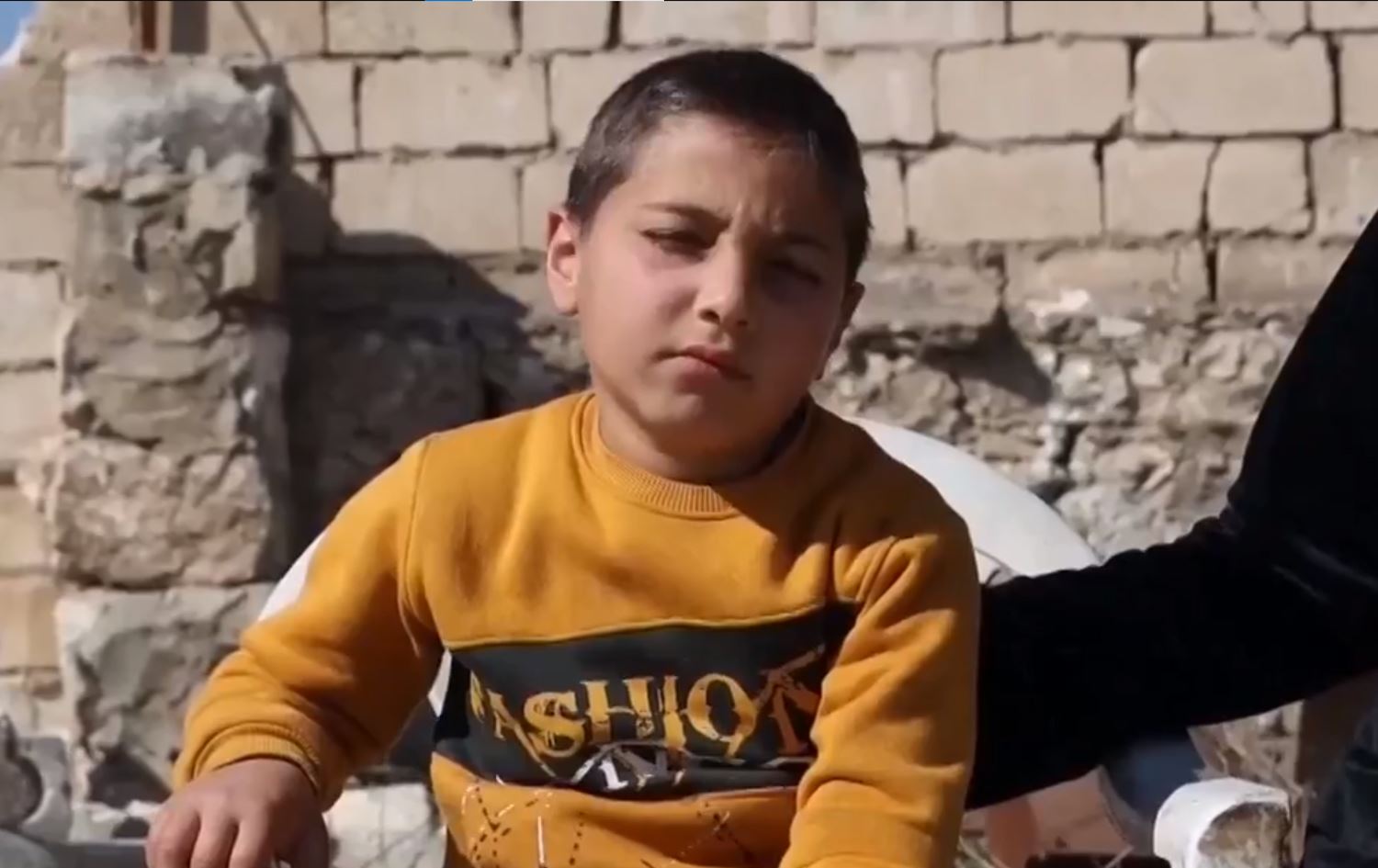 Hewlêr (Rûdaw) - Di erdhejê de, gelek dê û bavan xwe kirin mertal ji bo zarokên xwe. Li Bajarokê Etarib, li rojavayê parêzgeha Helebê zarokek bi navê Şaban heye ku sêwî maye û dê û bavê wî di erdhejê de canê xwe ji dest dane. Bavê Şaban di kêliyên dawiyê de berî herifîna mala wî kurê xwe rizgar dike lê ew û hevjîna xwe di bin kavil de dimînin.