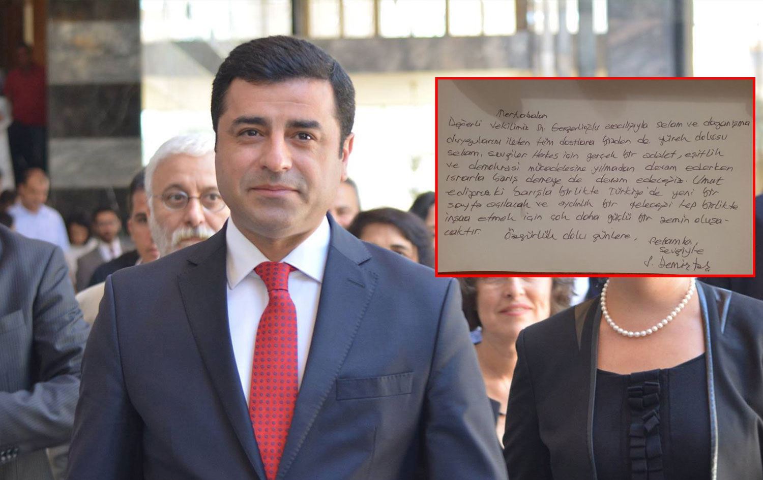 "Ji bo hemû dostên ku bi rêya parlamenterê me yê hêja Rêzdar Gergerlîoglu silav û hestên xwe yên hevgirtinê şandine, ji me jî silav û hezkirinên ji dil.