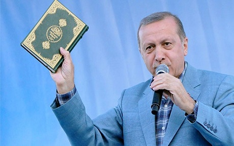 Wek tê zanîn, Erdogan li bajarên Sêrt, Êlih û Amedê û navçeya Gevera Colemêrgê, Qurana kurdî di mîtîngan de dabû destê xwe û nîşanî alîgirên xwe dida.