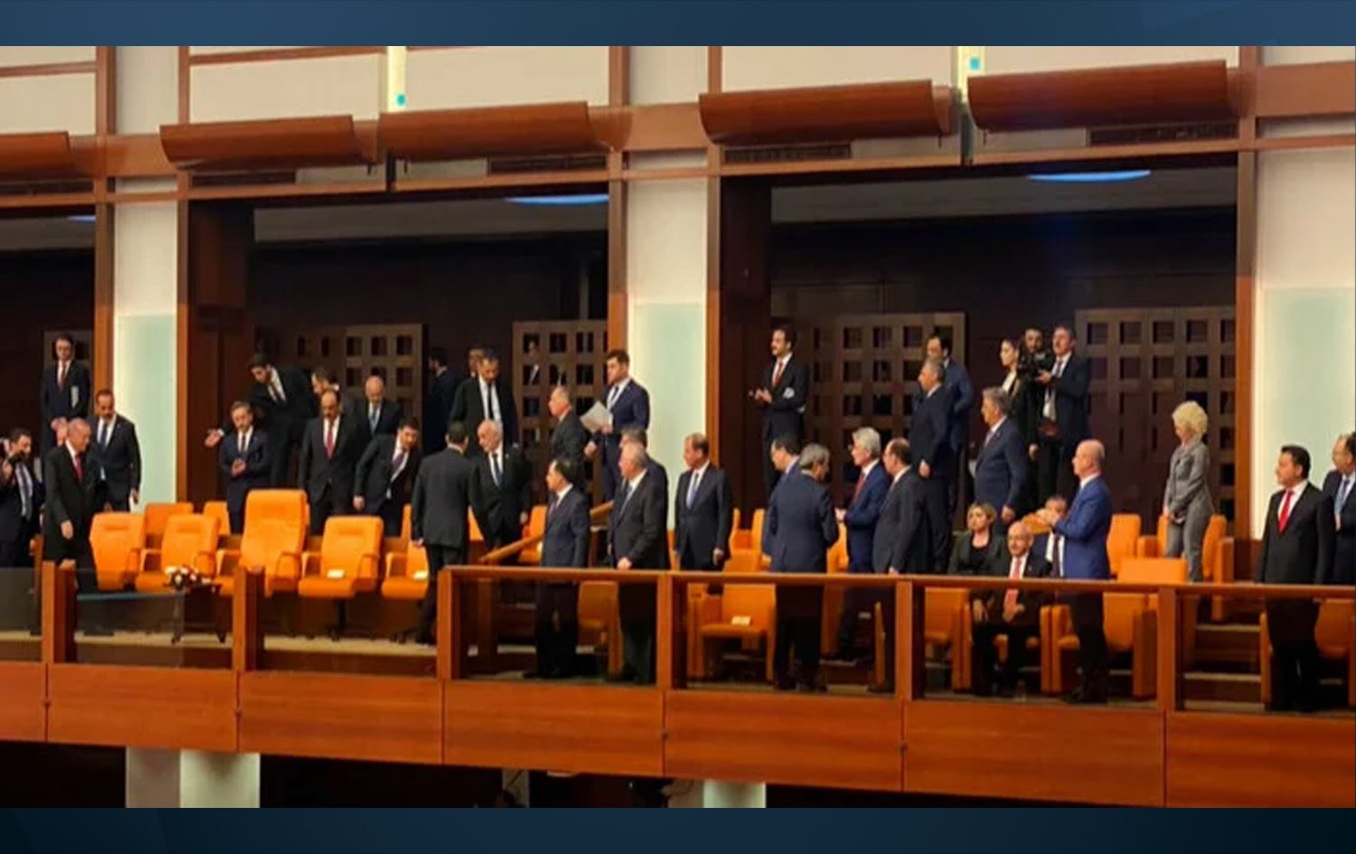 Hewlêr (Rûdaw) - Di yekem civîna Parlamentoya Tirkiyê de parlamenterên partiyên opozîsyonê dema ku Serokkomarê Tirkiyê Recep Tayîp Erdogan ket hundirê parlamentoyê ranebûn ser piyan û ew prostesto kirin, her wiha Kemal Kiliçdaroglu yê li nêzîkî Erdogan di locayê de rûniştibû ranebû ser xwe.