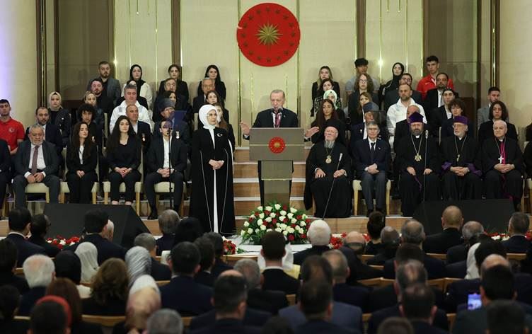 Erdogan got: “Dema em xizmetê dikin, me li bawerî, reng û dengê kesekê nenêriye. Me ticaran navçegirî, partîtî û cudakarî nekiriye. Wek Şêx Edebalî me got: Xelkê bide jiyan kirin bila dewlet bijî. Wek Ehmedê Xanê me got: Mirov nexşa ku bi pênûsa herî mezin hatî kêşandin e. Îro jî em li jêr ronahiya heman hikmetê dimeşin. Em îro jî heman xewn û prensîpan diparêzin. Îro jî bi heman heskirinê ya Hacî Bektaşî, Yûnis Emre, Pîr Sultan, Mewlana û Ehmedê Xanê bangewazî dikim. Em bi têgihiştinek ku nefretê, aciziyê û dijminatiyê zêde bike tevnagerin. Bi têgihiştineke hezkirinê, pêşwazîkirinê, birayetiyê û hembêzkirinê zêde bike tevdigerin. Em dibêjin werin em bibin yek.”