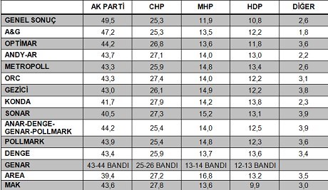 Rêveberê A&Gê Adil Gur jî ji malpera internethaber.comê re derbarê rapirsiyên xwe de wiha got: “Beriya hilbijartinan me rapirsiyek çêkir. Li gor rapirsiya me rêjeya dengên AK Partiyê ji sedî 47,2 û rêjeya dengên CHPê jî ji sedî 25,3 derket. Me rêjeya dengên ji derveyî Tirkiyeyê hatîn bikar anîn tevlî wê encamê nekiribû. Me zanî heger em rêjeya dengên ji derveyî Tirkiyeyê hatîn bikar anîn tevlî wê bikin dê rêjeya dengên AK Partiyê bibe zêdetirî ji sedî 48ê. Ji ber wê yek encam ji bo me nebû surprîz.