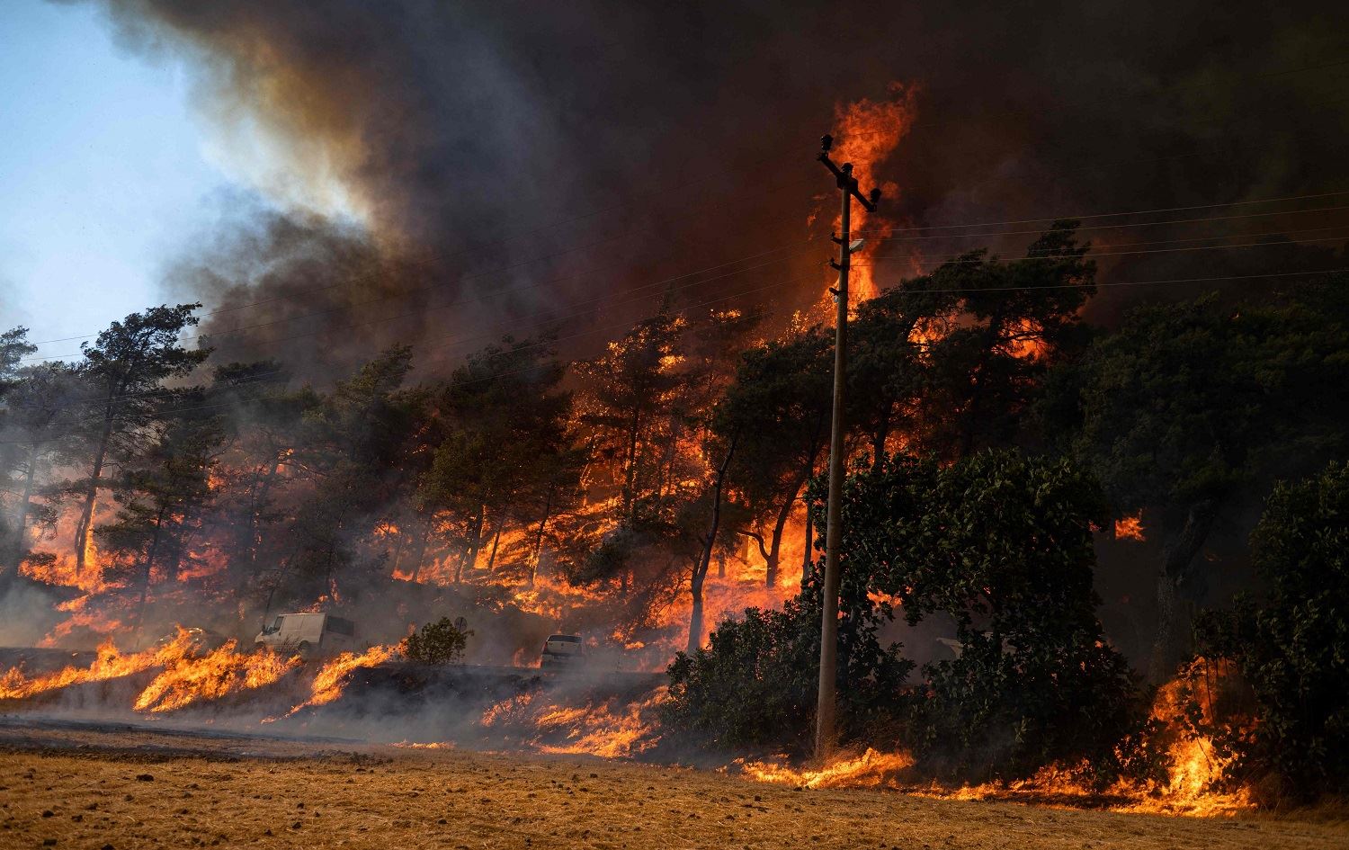 Şewata li daristanên navçeya Marmarîs a ser bi parêzgeha Mugla ya Tirkiyê, roja 3ê Tebaxa 2021. Wêne: AFP