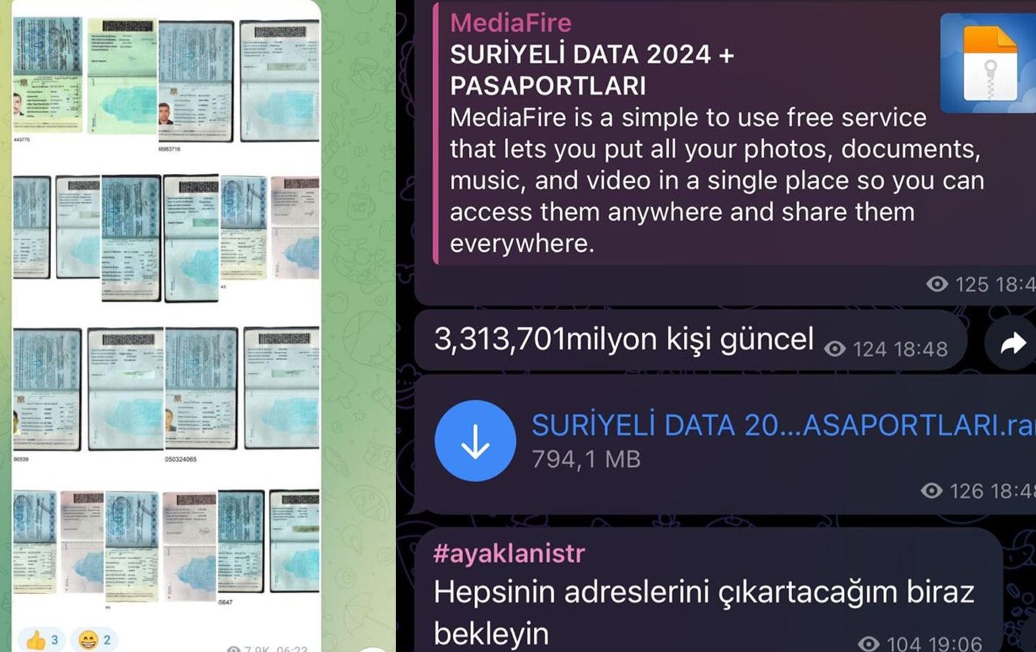 Di komên telegramê de nav, paşnav, hejmara telefonê, pasaport û navnîşanên 3,3 milyon koçberên Sûriyeyî yên ku li Tirkiyeyê dijîn hatibûn belavkirin.