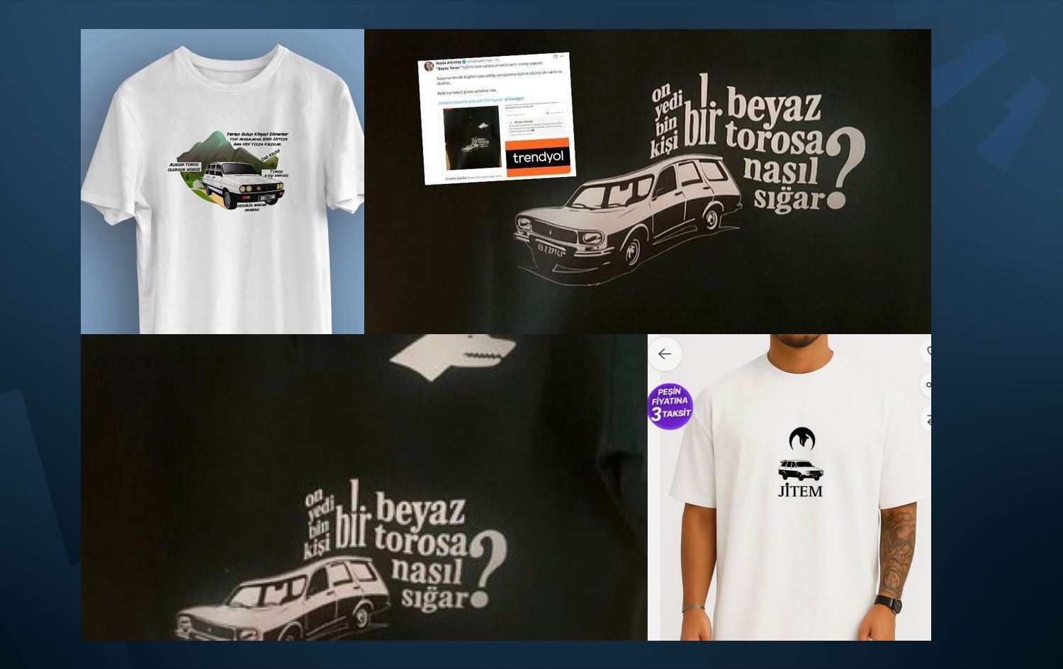 Li ser tîşortên ku ji aliyê firoşkarekî bi navê "Otuken Online" ve bi sernavê "Taybet ji bo hezkiriyên Torosê" hatibûn firotin, li gel wêneya "Torosa Spî" û "nîşana gurê bozkurt", nivîsa "17 hezar kes çawa di Toroseke spî de bi cih dibin?" cih digirt.