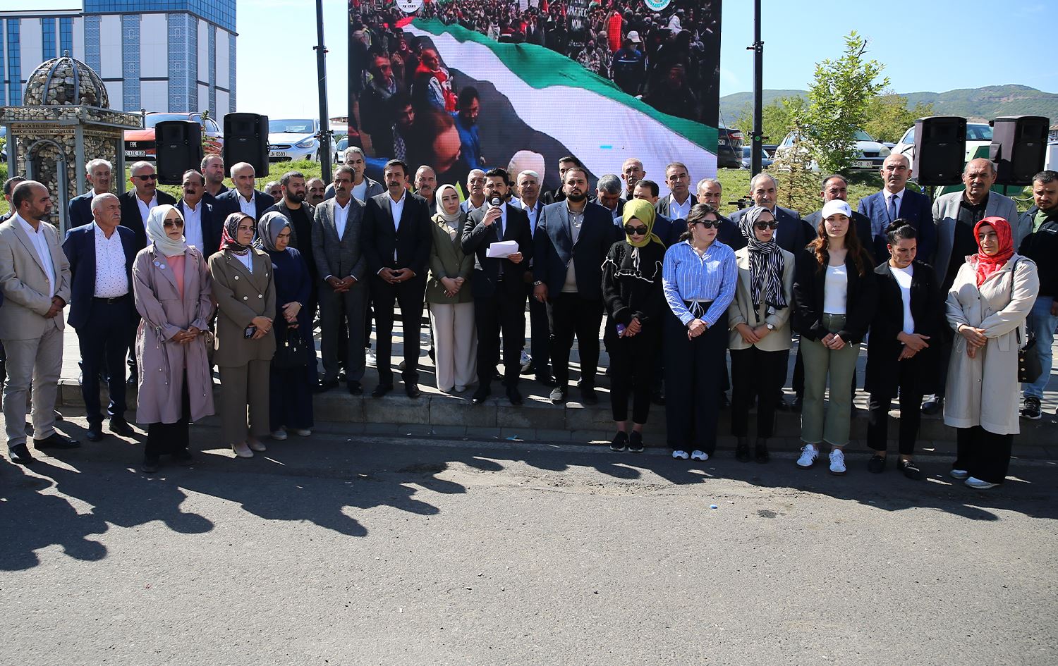 Alîkarê Serokê Bajêr ê AK Partiyê Ozan Ertaş li ser navê partiyiyan daxuyanî da û diyar kir ku Îsraîl salek e sivîlan dike hedef û guh nade hiqûqa navneteweyî.
