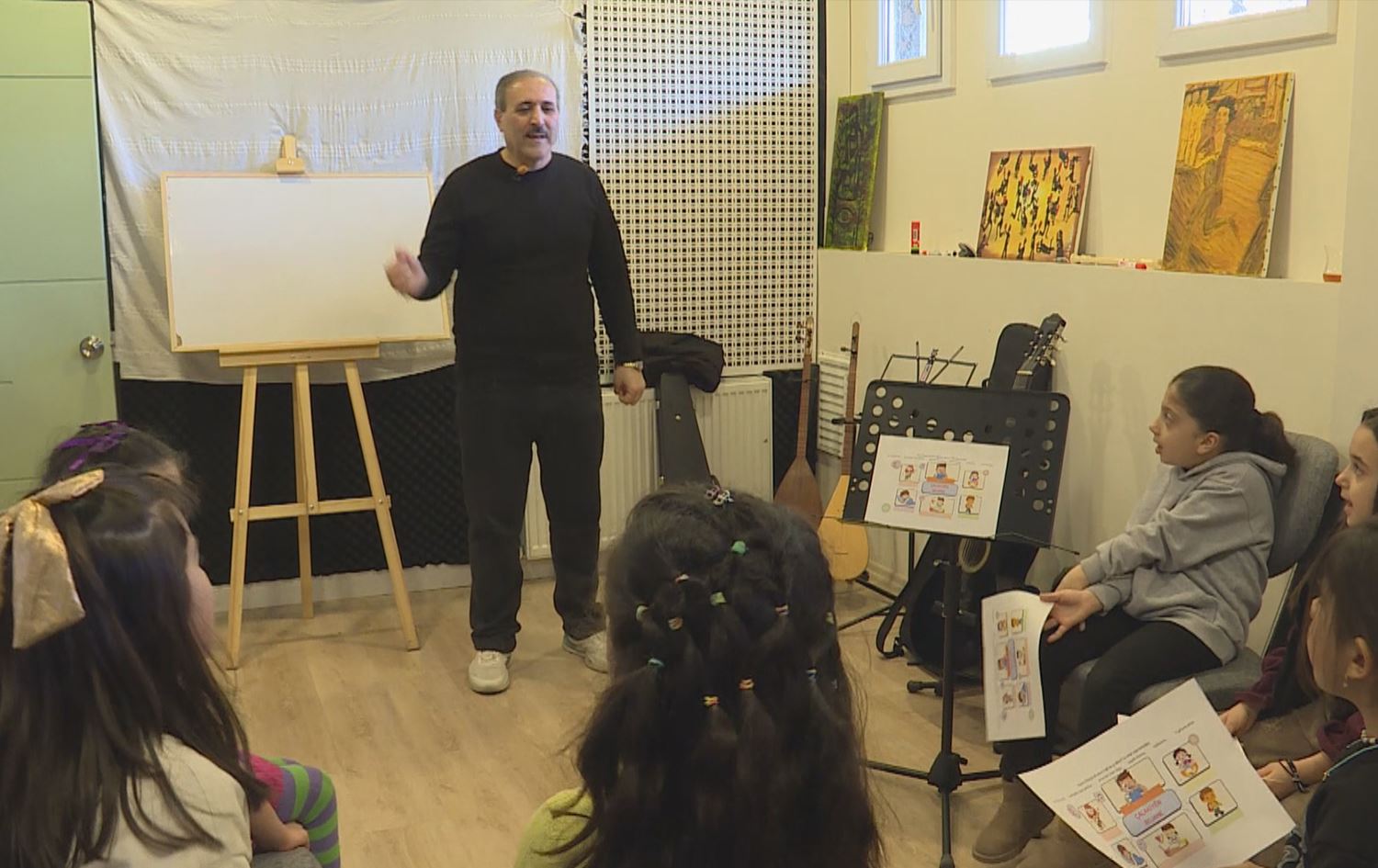 Beşdara kursa muzîkê Zelal Angayê ji Rûdawê re got, “Mamoste Haşim li vir hem dersa enstrûmanên weke keman û kemençeyê dide hem jî bi zarokan re dersên koroya muzîkê dide.