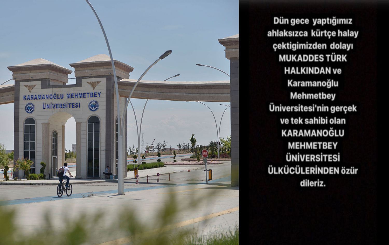 Di parvekirina li ser medya civakî de wiha hatiye nivîsandin “Em ji gelê Tirk ê pîroz û xwediyên rasteqîn ên Zanîngeha Karamanoglu Mehmetbey, Ulkucuyê Zanîngeha Karamanoglû Mehmetbey ji ber govenda govenda Kurdî a bêexlaq ku me duh êvarî gerand, lêborînê dixwazin.”