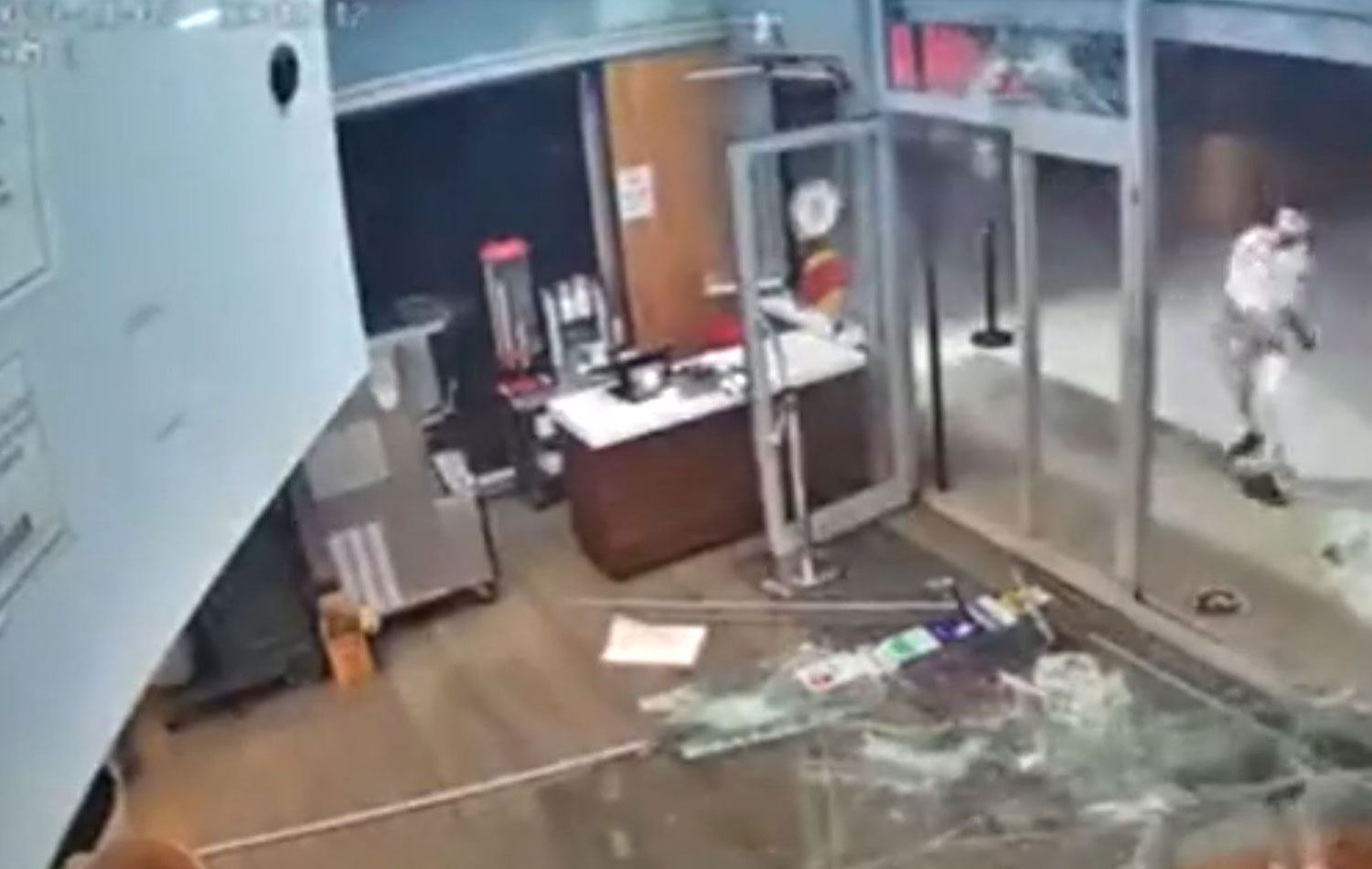 Êrîşkar bi hesinê di destê xwe de camên xwaringehê şikand.