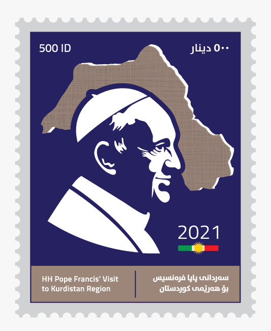 Bi boneya serdana Papa Francis bo Hewlêrê Wezareta Veguhestin û Gihnadinê ya Herêma Kurdistanê 6 pûlên postan çê kir yek ji wan nexşeya Kurdistanê li ser e.