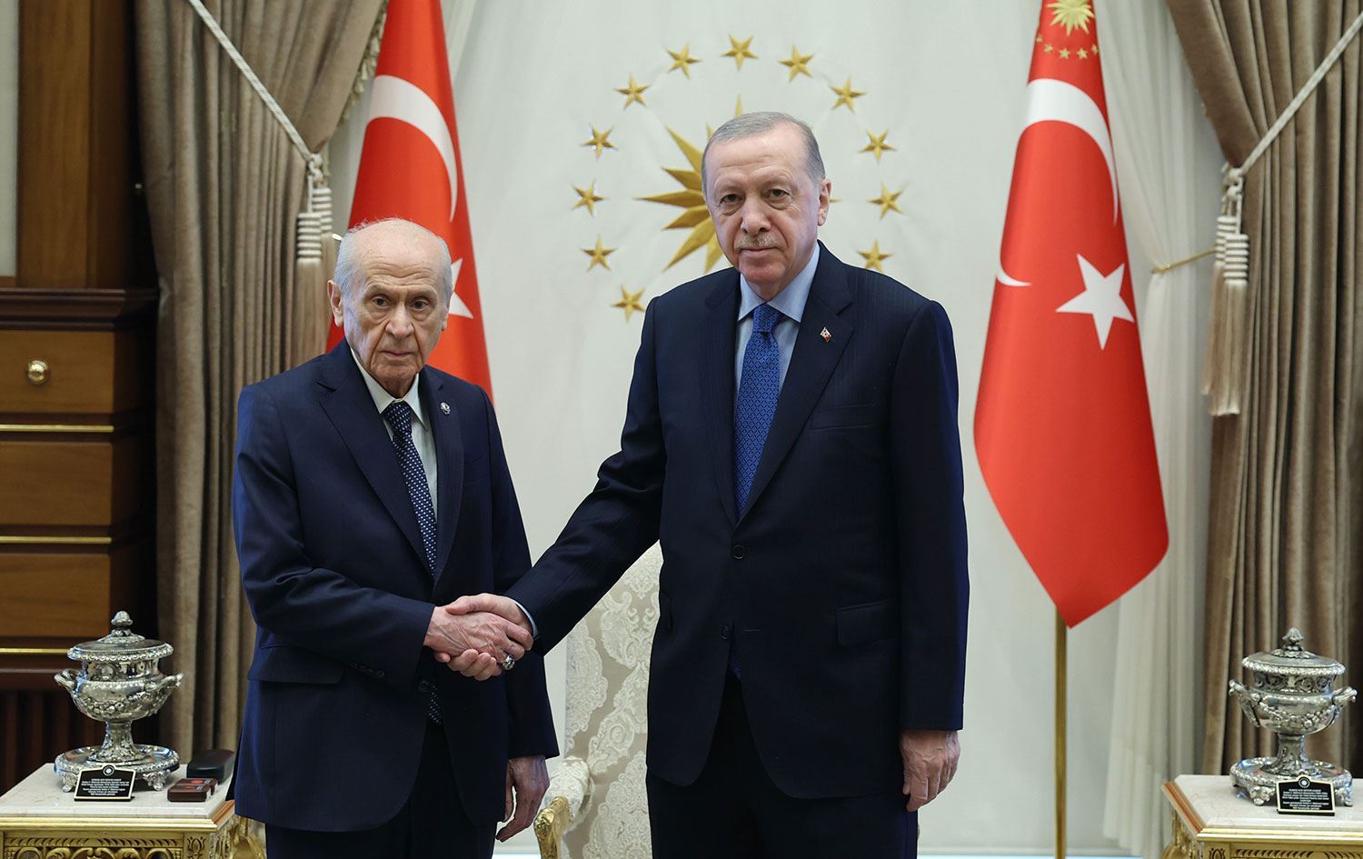 Hewlêr (Rûdaw) - Serokkomarê Tirkiyeyê Recep Tayyîp Erdogan îro li Koşka Serokkomariyê ya Tirkiyeyê Serokê Giştî yê MHPyê Devlet Bahçelî pêşwazî kir.