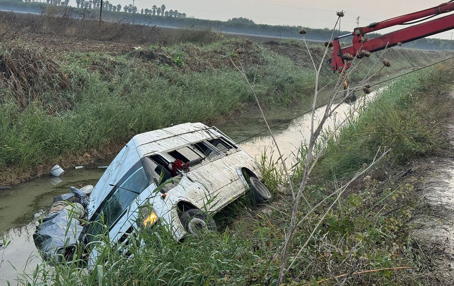 Minîbusa ku nasnameya ajokarê wê hîn nehatiye diyarkirin û karkerên çandiniyê tê de bûn, wergeriya û ket kanala avdaniyê.