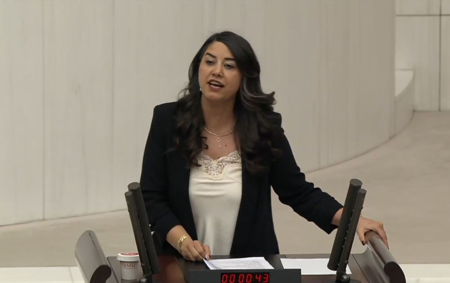 Endama Komîsyona Dadê ya Parlamentoyê û Parlamentera DEM Partiyê Dîlan Kunt Ayan doh li Parlamentoya Tirkiyeyê axivî.