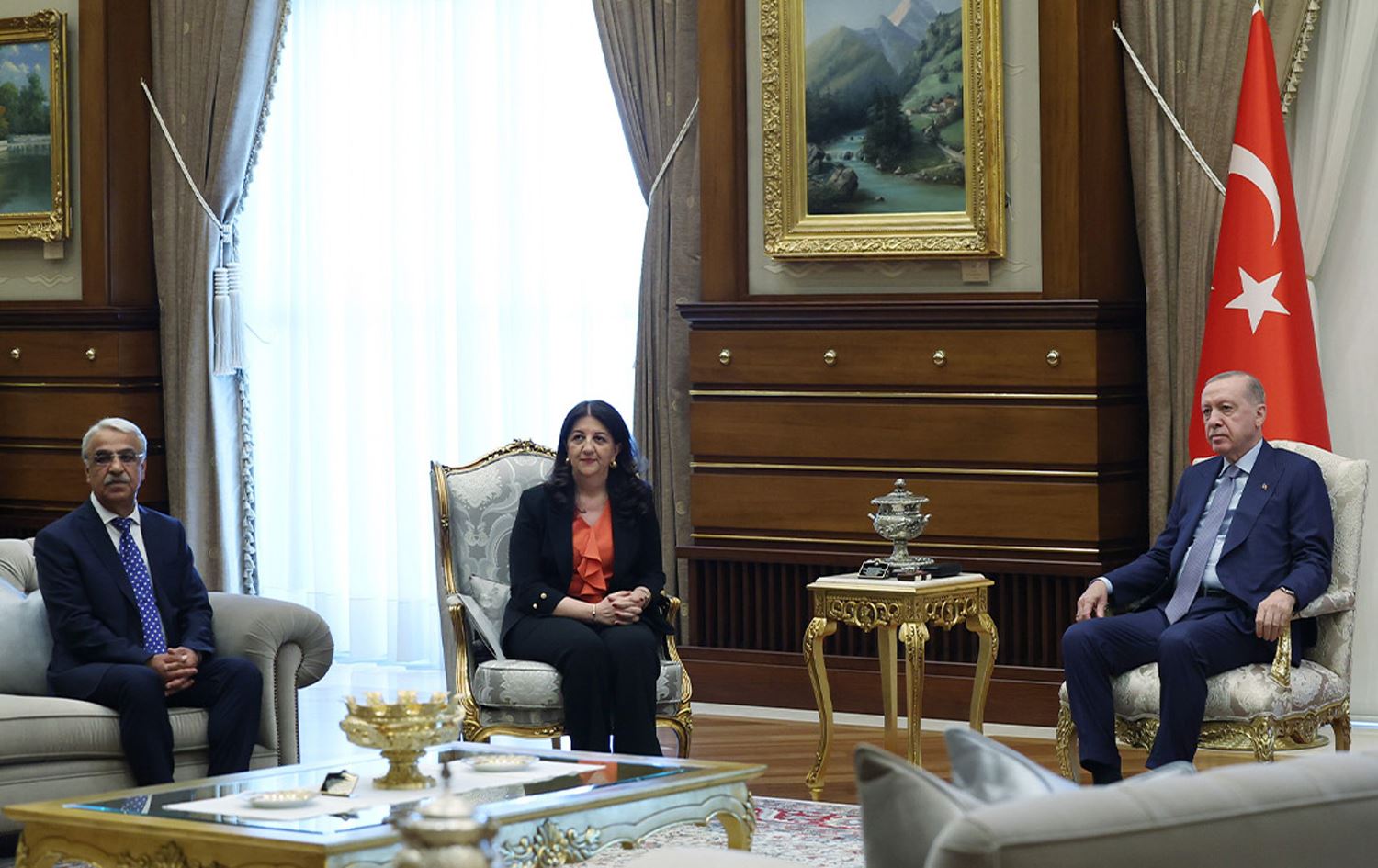 Hevdîtina Endamên Heyeta Îmraliyê ya DEM Partiyê Pervîn Buldan û Mîthat Sancar a bi Serokkomarê Tirkiyeyê Recep Tayyîp Erdogan re dest pê kir.