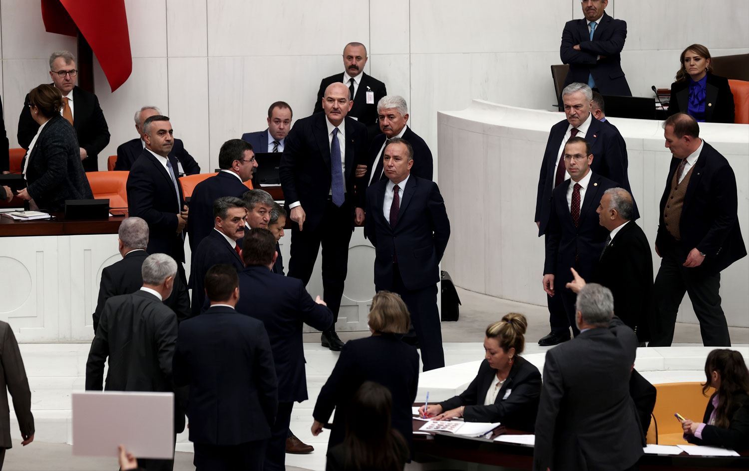 Piştî wan gotinan parlamenteran wêneyên Soylu yên ligel kesên sucdar avêtin ser kursiya parlamentoyê û bi yekdengî daxwaza îstîfaya wî kirin.