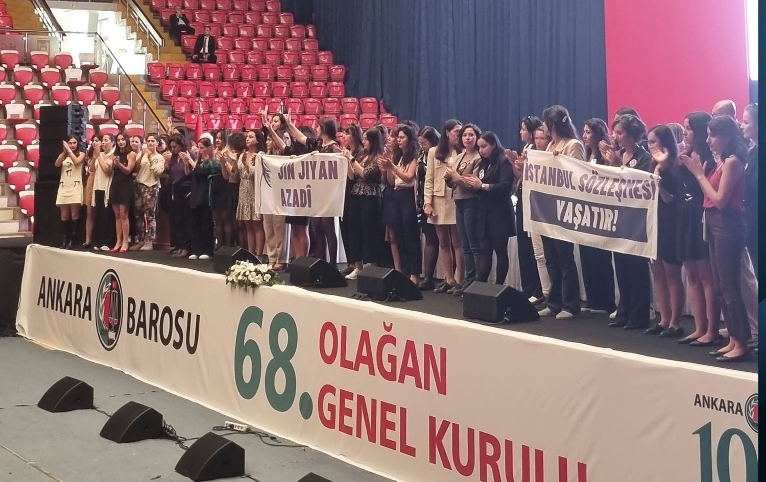 Di kongreyê de parêzerên jin ên koma Parêzerên Hemdem ên Azadîxwaz (OÇAV) ji bo balê bikişînin ser zêdebûna kuştina jinan a li Tirkiye û Bakurê Kurdistanê derketin ser dikê û pankarta li ser “Jin Jiyan Azadî” nivîsandiye bilind kir.