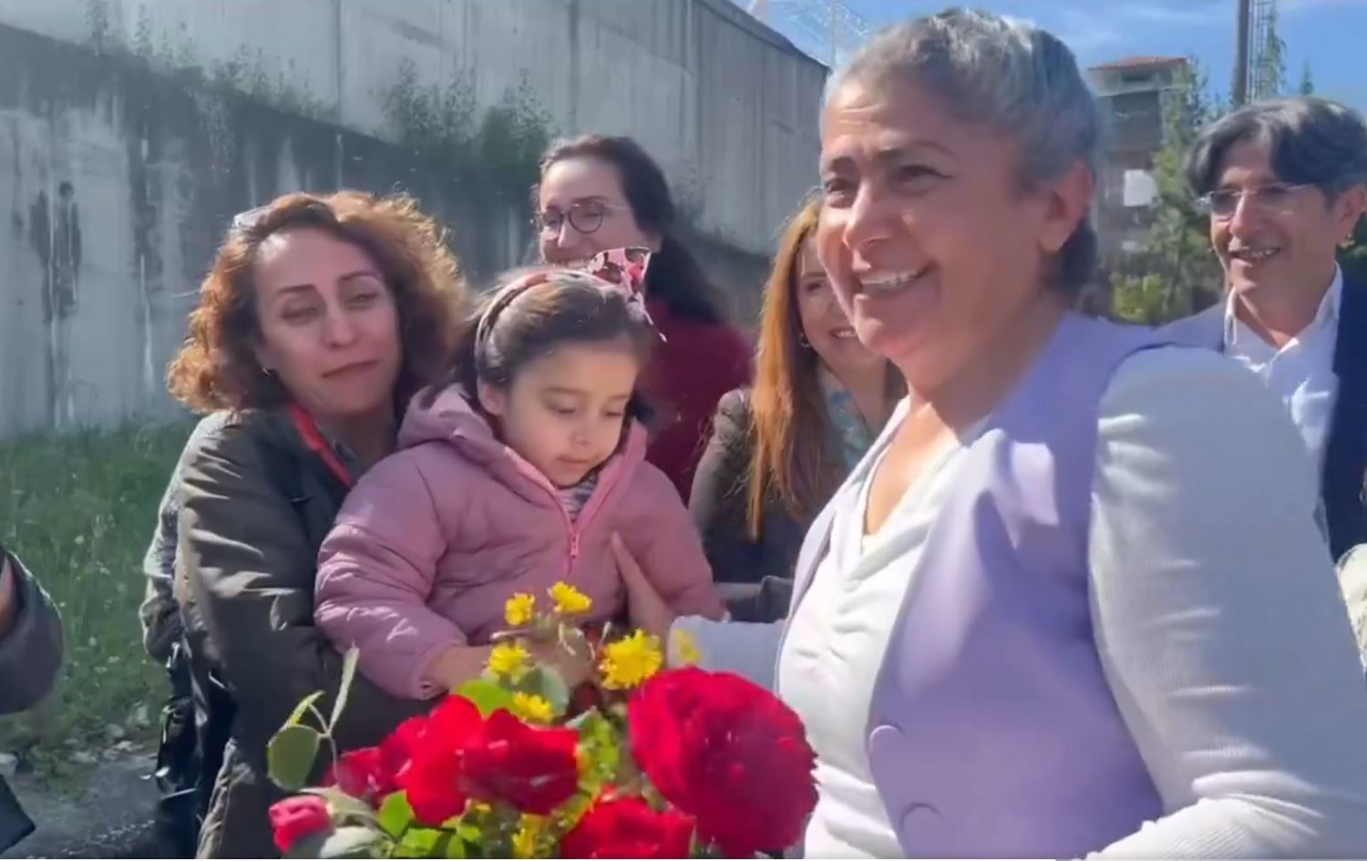 Parlamenterê DEM Partiyê yê Mêrsînê Ali Bozan û berpirsên DEM Partiyê yên Kocaeliyê li pêş girtîgehê Nurhayat Altun pêşwazî kir.
