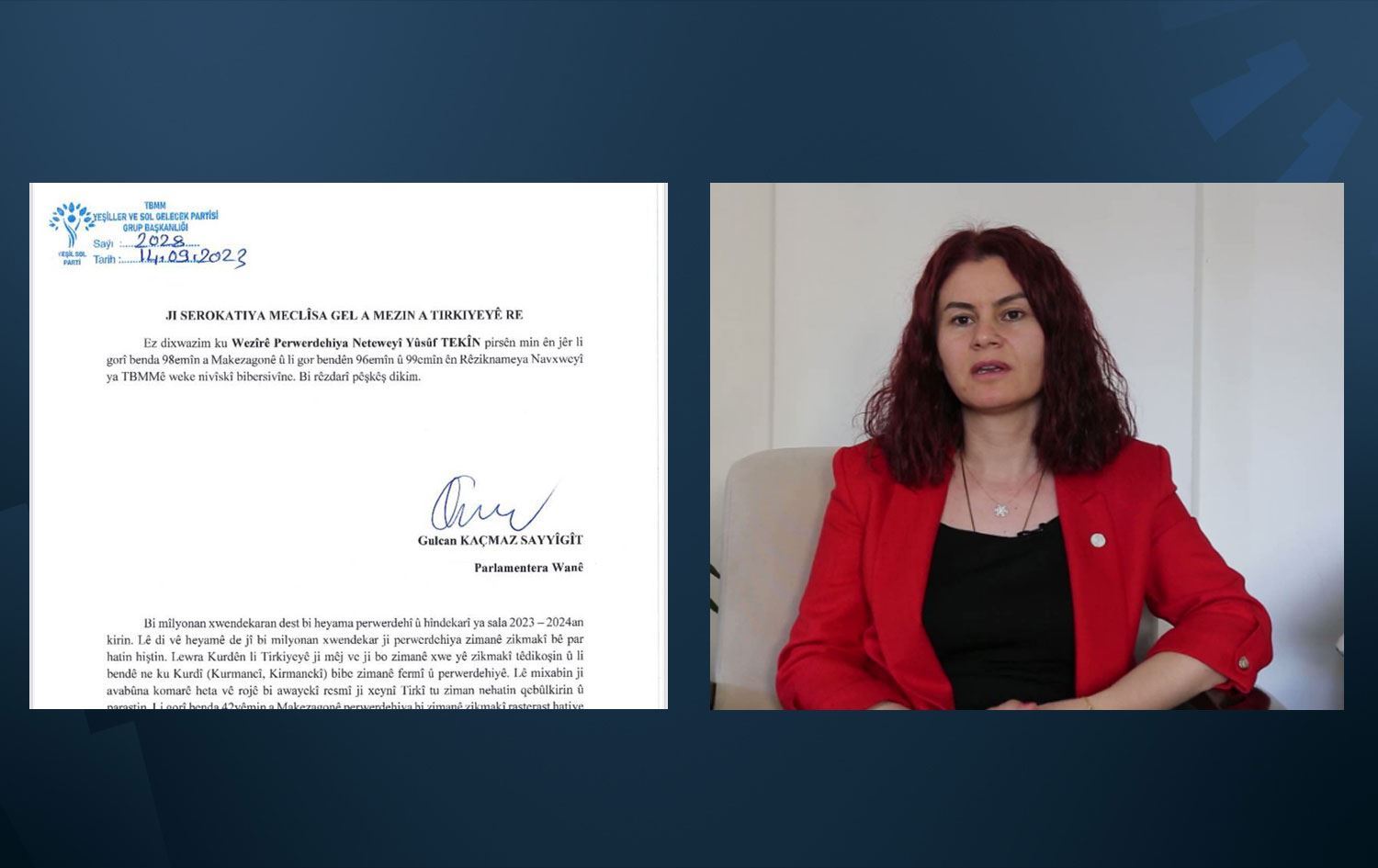 Parlamentera Partiya Çepên Kesk (YSP) a Wanê Gulcan Kaçmaz Sayyîgîtê li ser zimanê Kurdî û cihgirtina wê ya di sîstema perwerdeyê de pêşniyarpirsek pêşkêşî Serokatiya Parlamentoyê kir.