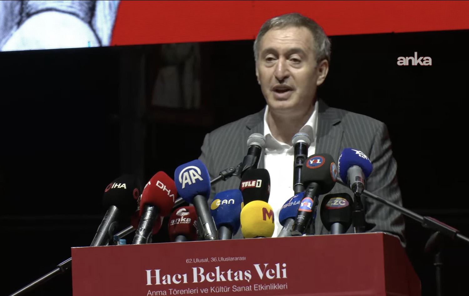Hevserokê Giştî yê DEM Partiyê piştî serdana Tirbeya Hacî Bektaş Welî û Cemxaneya Garip Dede di mîtînga li navçeyê axivî.