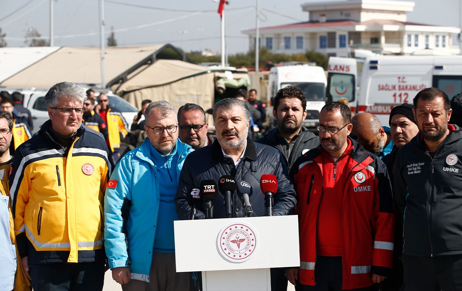 Wezîrê Tendirûstî yê Tirkiyê Fahrettin Koca îro Şemiyê 18ê Sibata 2023an li parêzgeha Hatayê derbarê kar û xebata tendirûstiyê li herêma erdhejê de daxuyaniyek da.