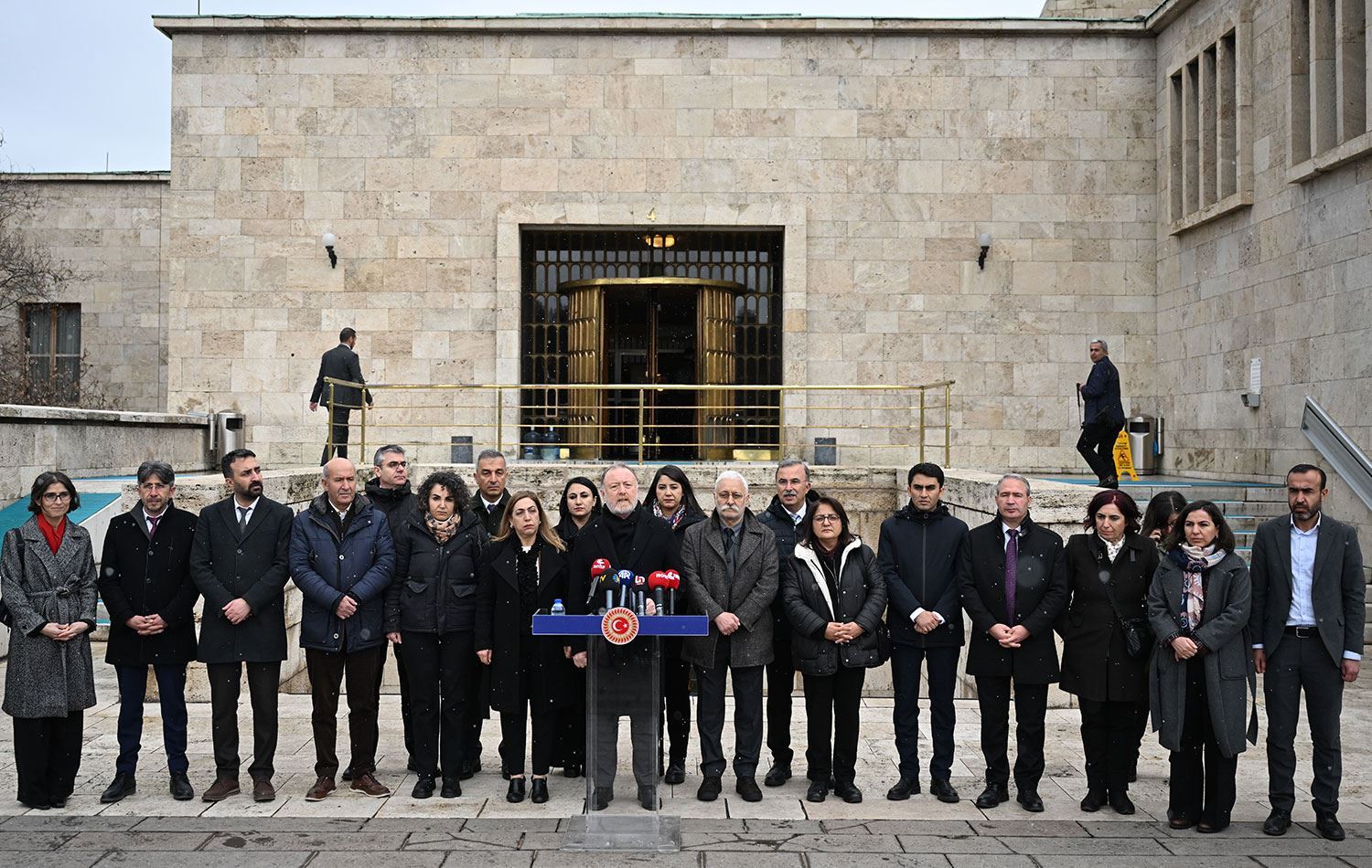 Serokwekîlê Koma DEM Partiyê Sezaî Temellî û hinek parlamenterên DEM Partiyê li dijî danîna qeyûman, daxuyaniyek da.