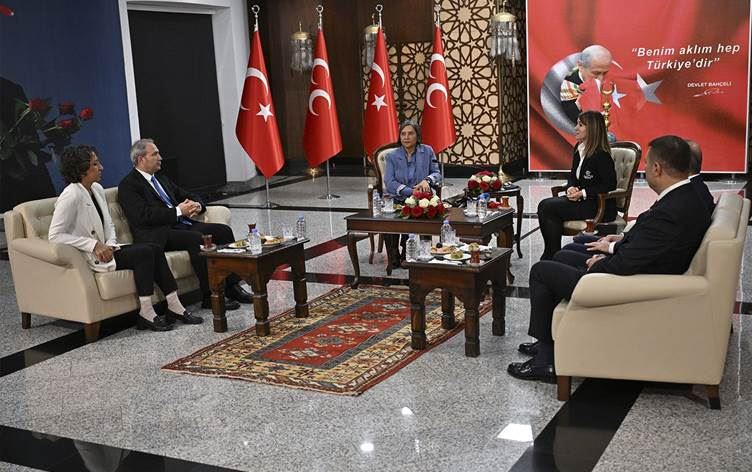 DEM Partiyê bi şandeyekê MHPyê ziyaret kir û MHPyê jî DEM Partî ziyaret kir.