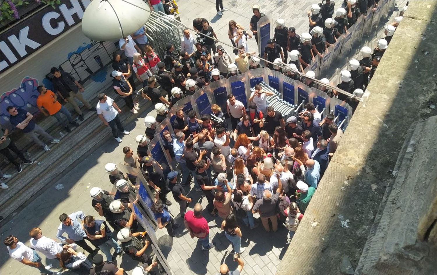 Beriya daxuyaniyê polîsan ji girseya gel a li kafeyeke nêzî Meydana Galatasarayê kom bûn re gotin, ku ew bi hinceta biryara qedexekirinê ya Qeymeqamiya Beyoglûyê dê destûr nedin çalakiyê.