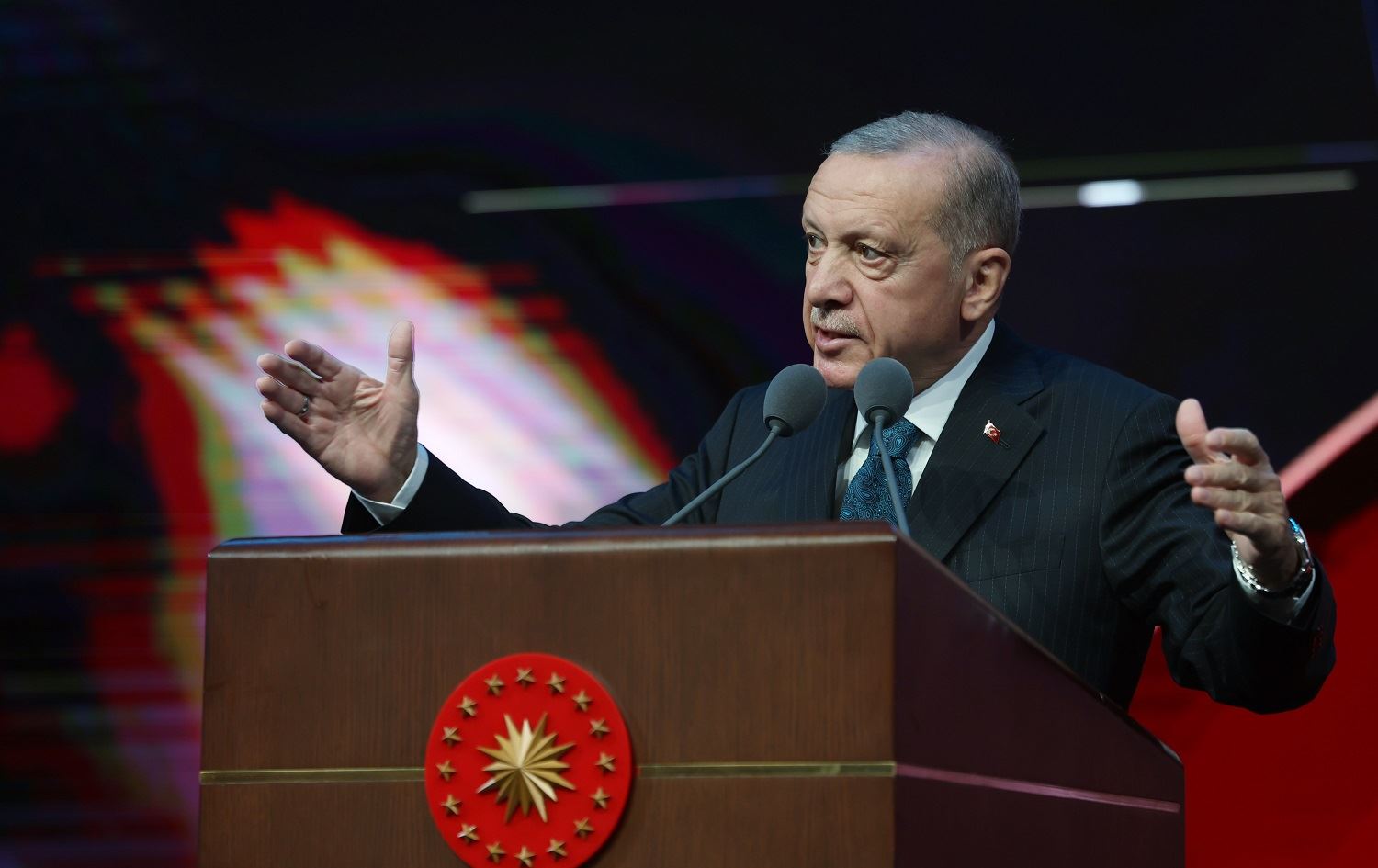 Serokomarê Tirkiyê Recep Tayyip Erdogan li Navenda Kongre û Çandê ya Neteweyî ya Beştepeyê di merasima pişkavêtinê ya Dadger û Serdozgerên Komarê û Dadwerên Dadweriya Îdarî de axivî.