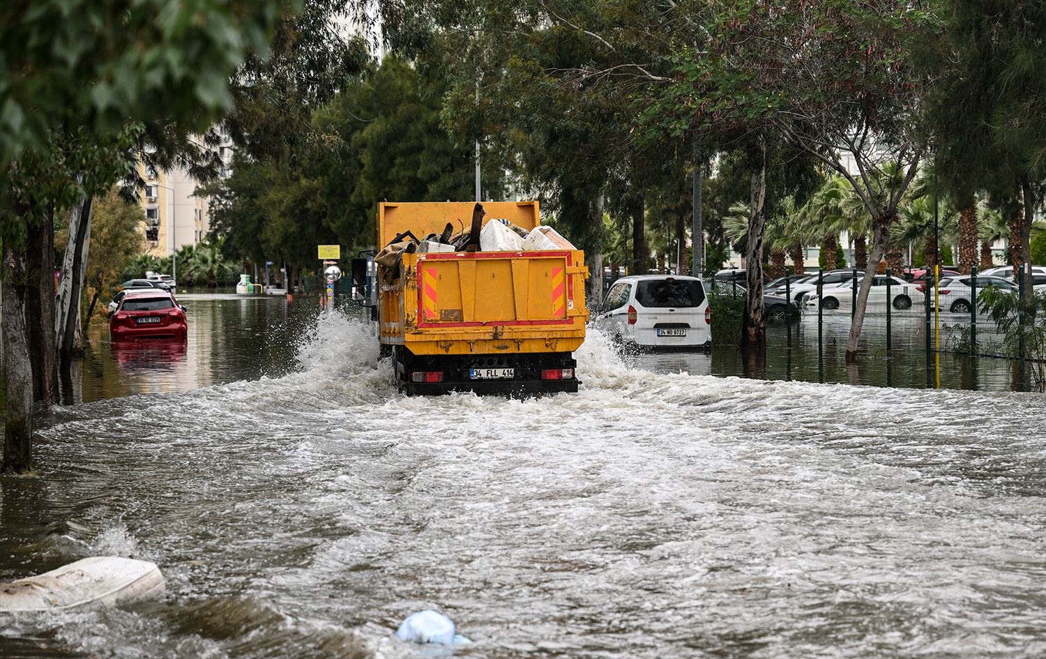Li navçeyên kêleka Deryaya Egeyê ya Îzmîrê, piştî baraneke gur asta ava Deryaya Egeyê bilind bû û şeva şemiyê ve jiyan rawestiyaye.