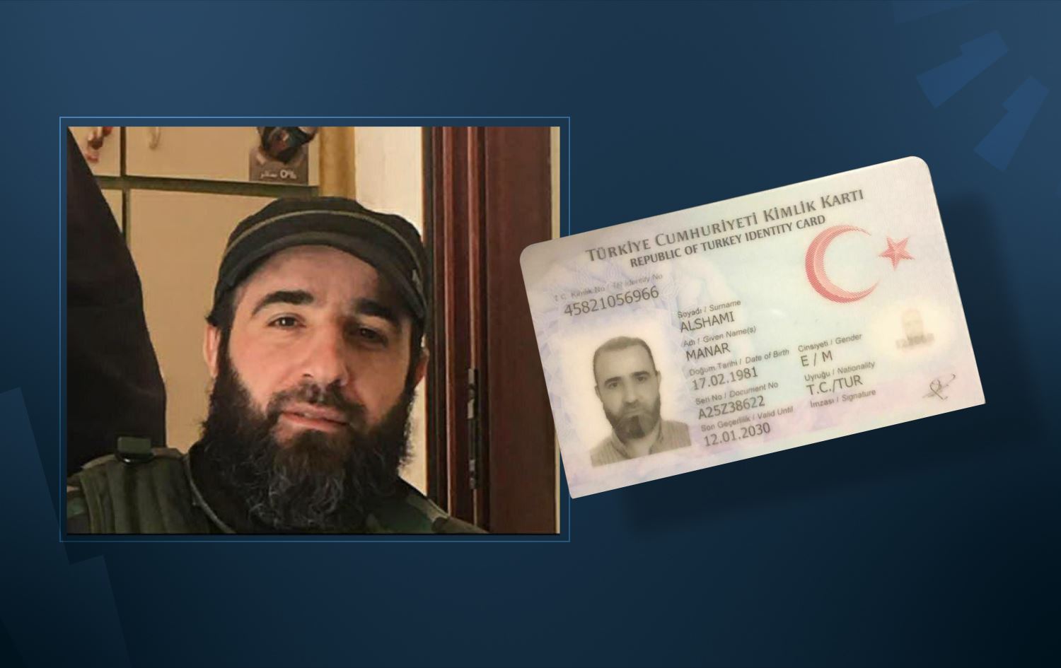Rojnamevan Lindsey Snell li ser hesabê xwe yê Twitterê îddîa dike ku fermandarê berê yê el-Qaîdeyê Manar el-Shami nasnameya Tirkiyê wergirtiye û nasnameya El-Shami parve kir.