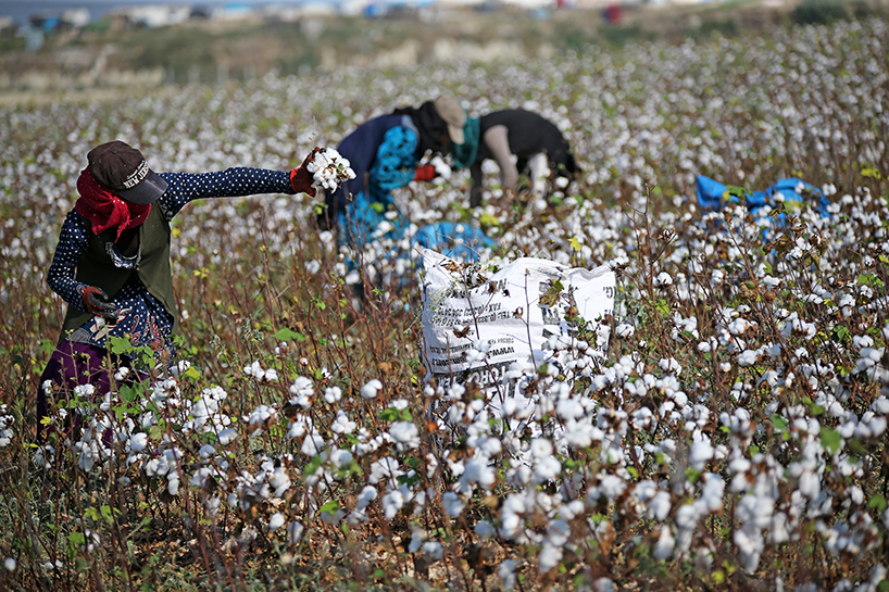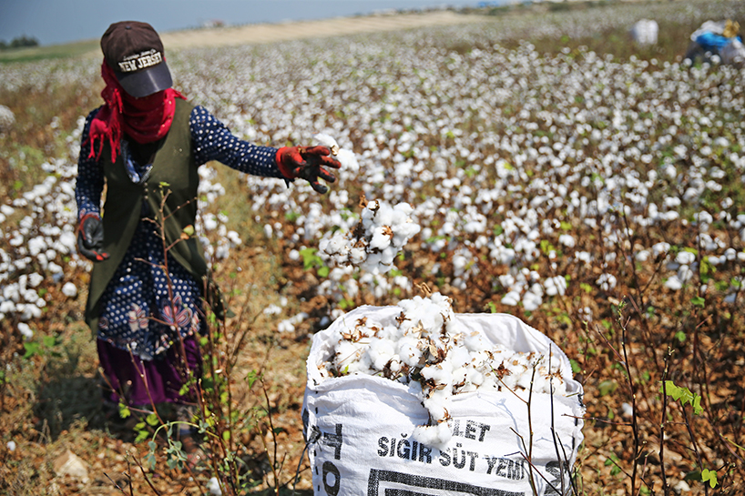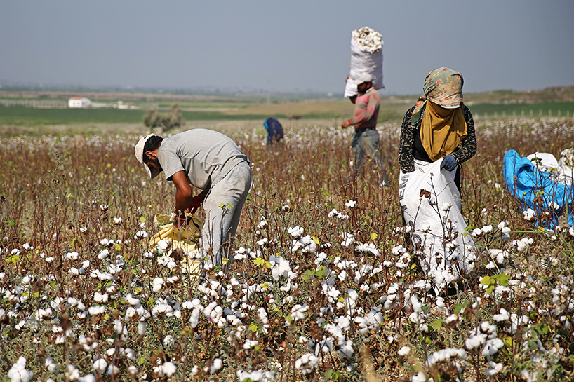 Li zeviyên Deşta Çukurovayê ya Edaneyê di bin 40 pile germahiyê de karmend pembû berhev dikin.