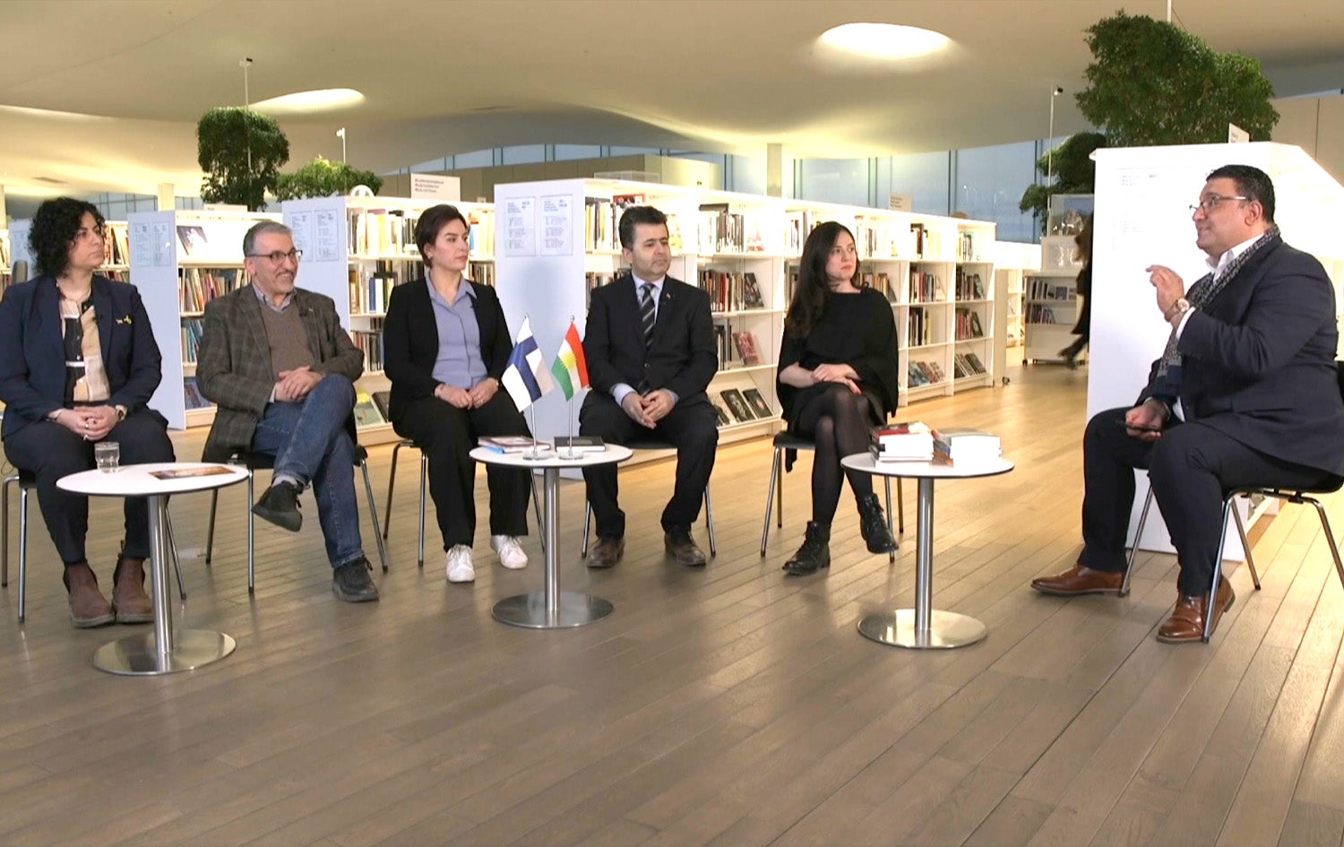 Gelekî spas ji we re ku we pêşwaziya me kir, çimkî em mêvanên we ne, divê ez wê jî bibêjim ku em li pirtûkxaneya giştî ya bajarê Helsînkî ne, beriya bernameyê mêvanên min ên hêja ji min re behs kirin û gotin niha em beramberî parlamentoya Fînlandê ne, parlamentoya Fînlandê avahiya wê wisa hatiye çêkirin ku lap beramberî wê pirtûkxaneyê be ku xelkê asayî tê li vir rûdine, kursiyên gelekî xweşik hatine danîn, dikarin parlamentoya xwe bibînin, hevast in ligel wan kesên ku biryarê li ser siyaseta Fînlandî didin.
