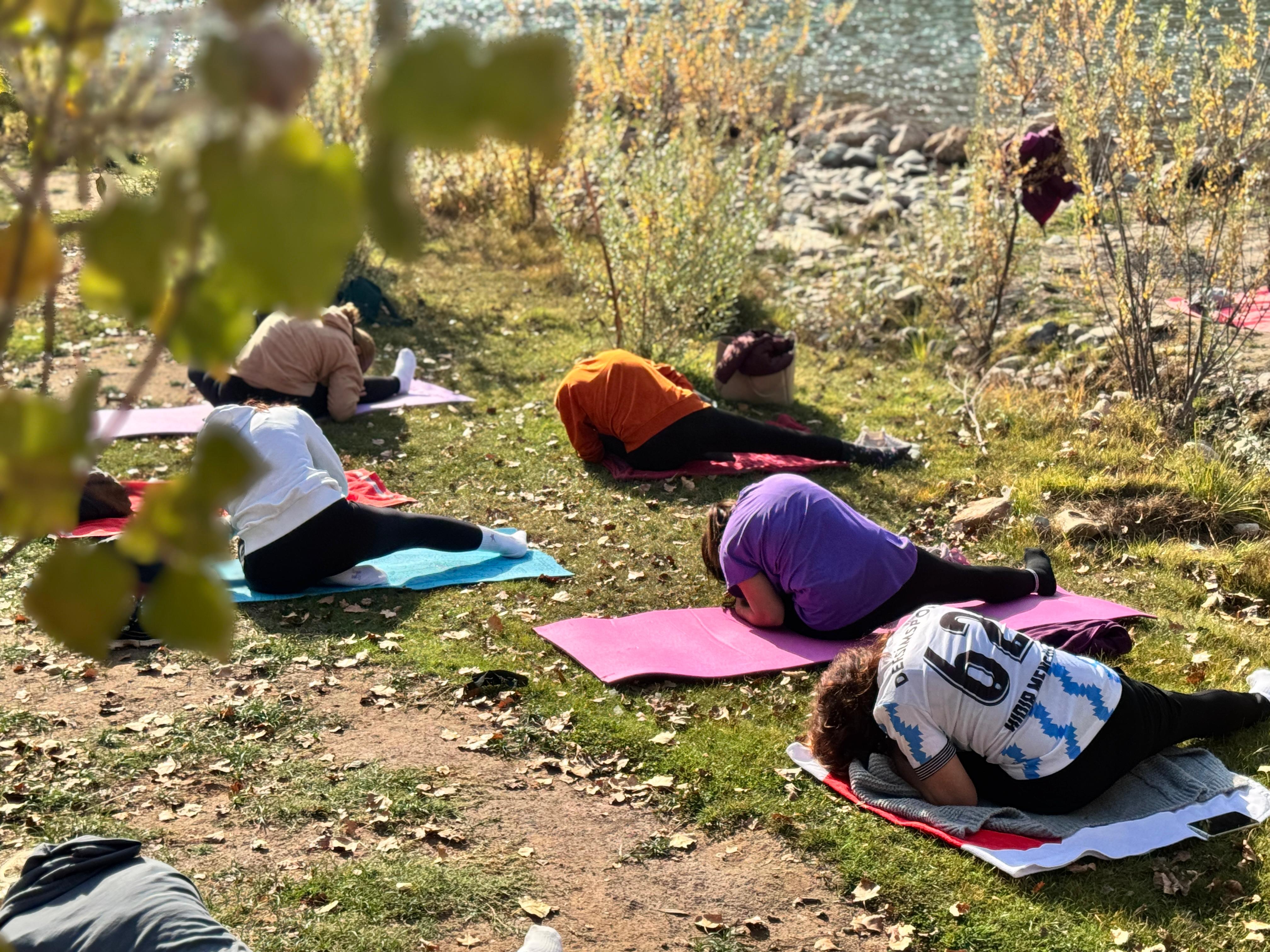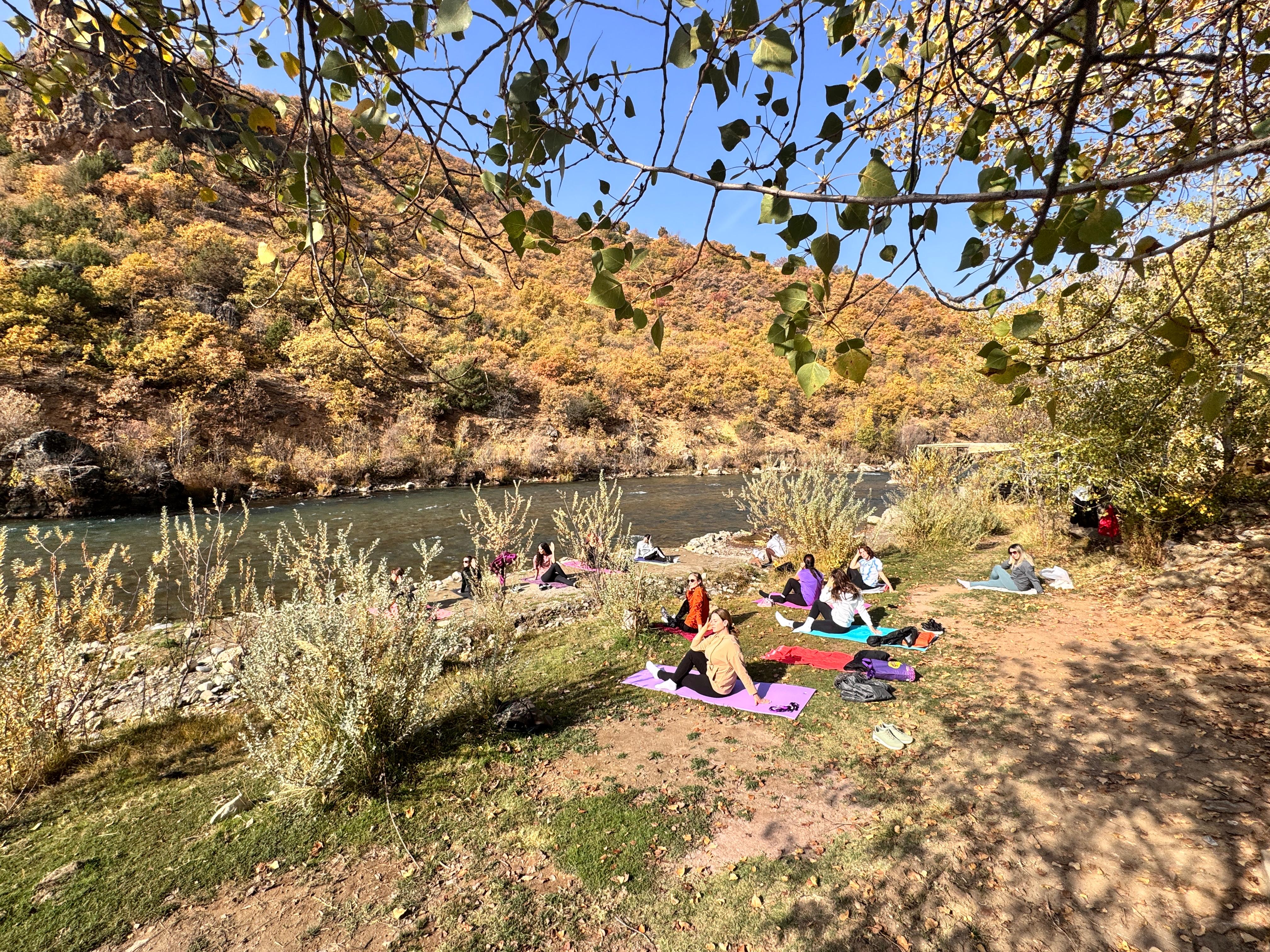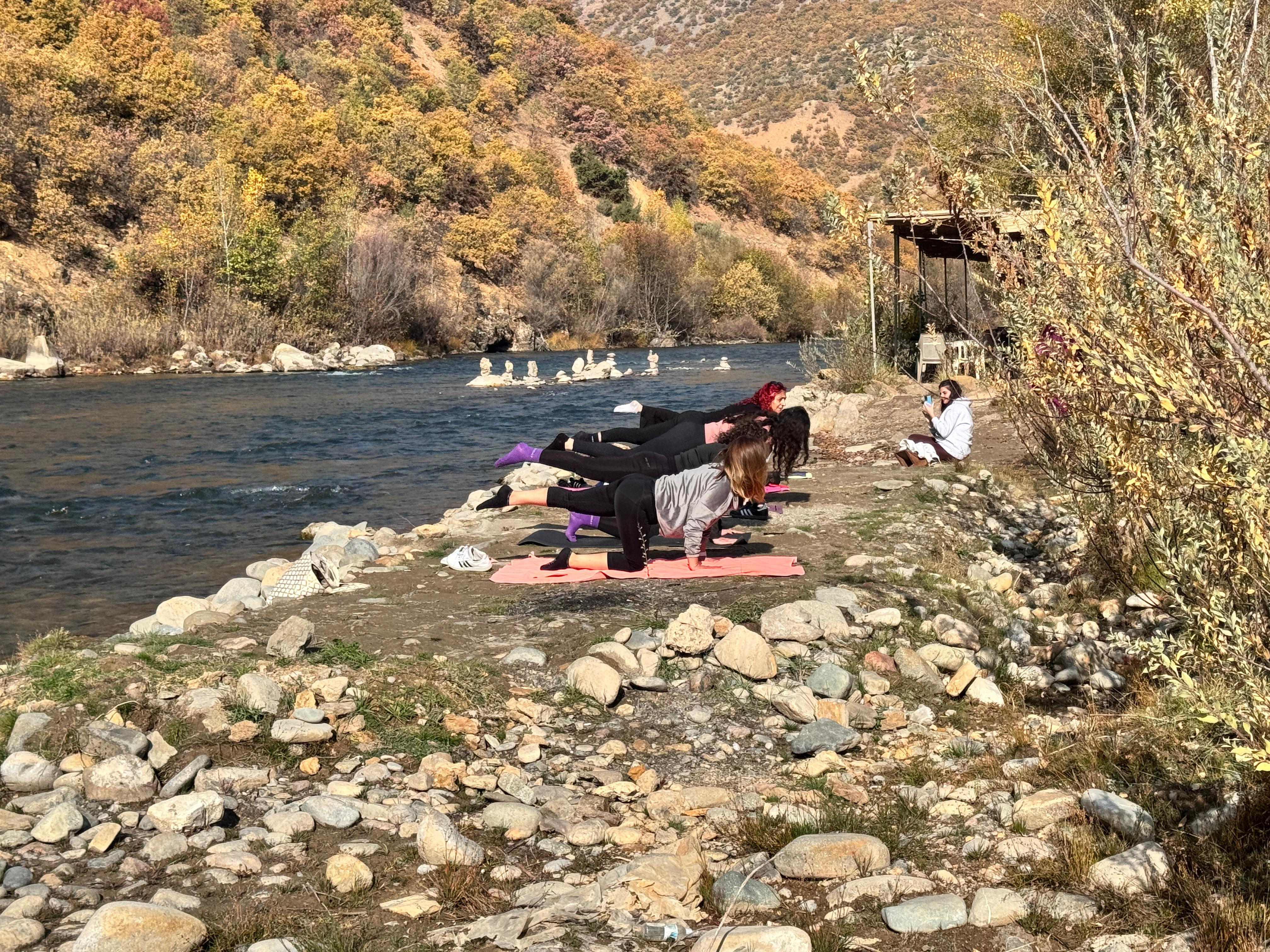 Jinên ku dixwazin bi stresa zêde re serî derxin, li atmosfera xwezayî ya Geliyê Munzurê bi werzîşên nefesê, tevgerên rakişandinê û medîtasyonê hewl didin ku rihet bibin.