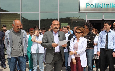 Îro, endamên SESê li ber Nexweşxaneya Dewletê ya Dêrsîmê ji bo guhertina pergala tenduristiyê çalakiyeke girseyî li dar xist. Li ser navê karmendên tenduristiyê Serokê Baskê SESê yê Dêrsîmê Ozkan Ûç daxuyand. Ûç, diyar kir ku ji bo dawîhatina tundiya li beramberî kedkarên tenduristiyê û ji bo guhertina 'pergala ku rê li ber tundiyê vedike' daketine qadan.