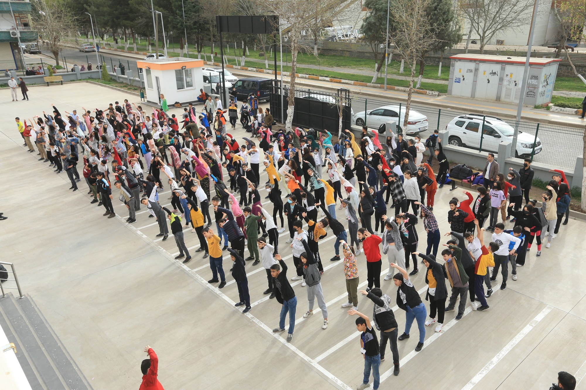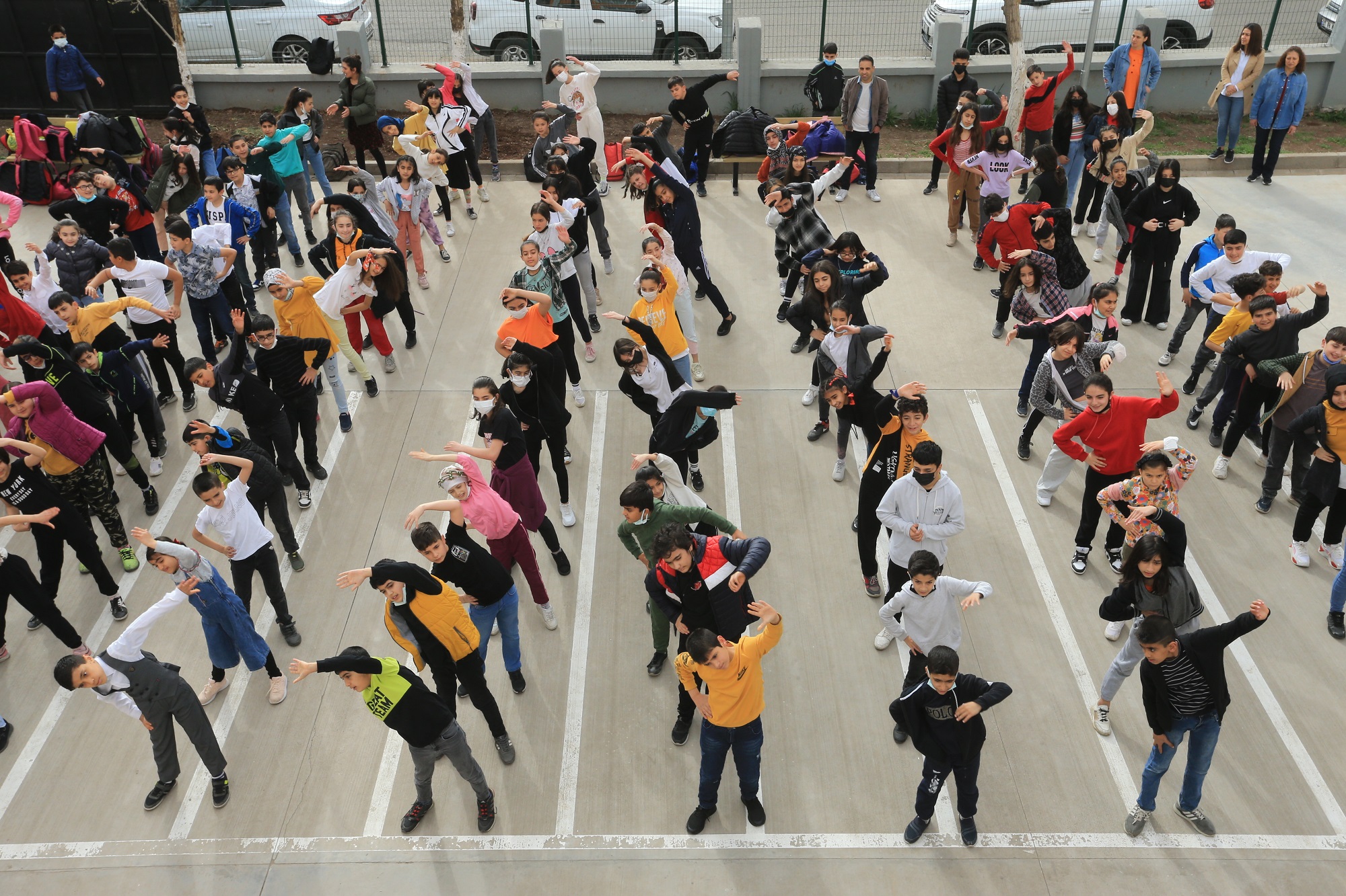 Hewlêr (Rûdaw) - Li hewşa dibistaneke navendî li parêzgeha Amedê ya Bakurê Kurdistanê, li ber dengê muzîkê û bi kêfxweşî ev zarok bi werzîşê dest bi rojê dikin û xwe amade dikin zindîtir û bi enerjiyeke zêdetir bikevin dersê.