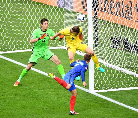 Lîstikvanê Fransayê Giroud xuleka 58emîn bi serê xwe gola yekem avêt Romanya, lê lîstikvanê Romanyayê Stancu jî xuleka 65emîn bi penaltiyê bersiva gola Fransayê da.