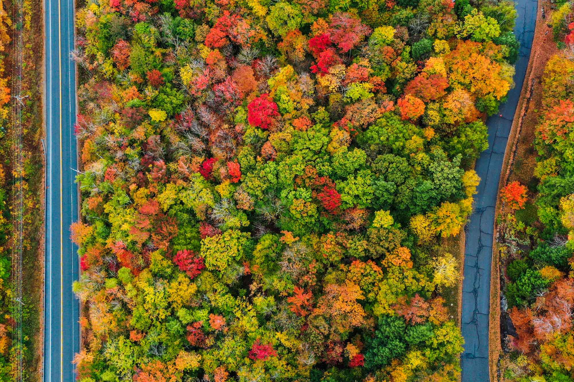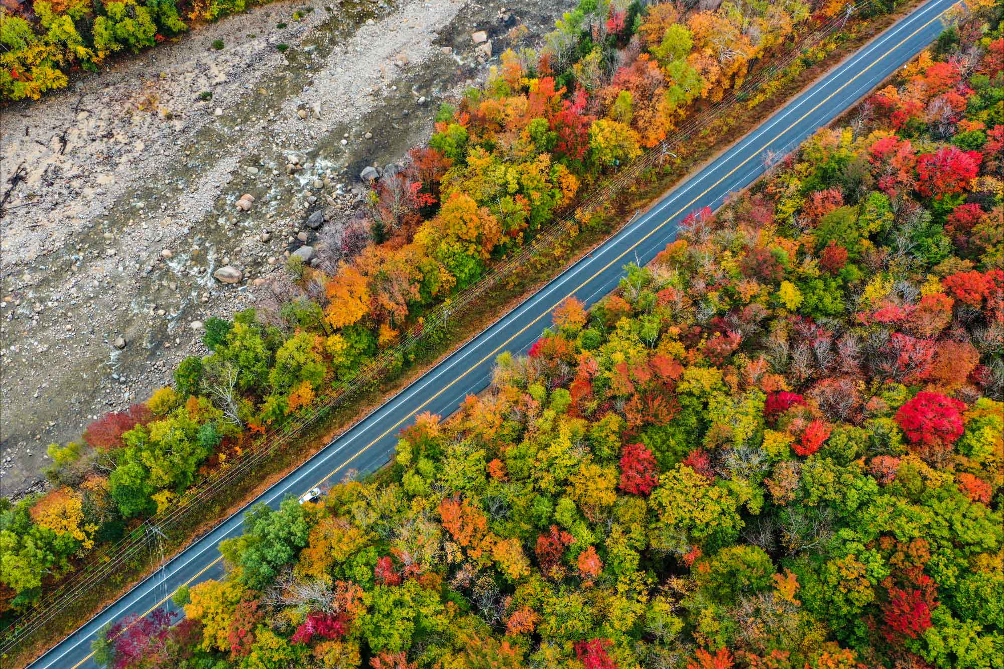 Li gel hatina werzê payîzê rengê darên daristana niştimanî li wîlayeta New Hampshire a Amerîkayê guheriye bo zer, pirteqalî û sor.