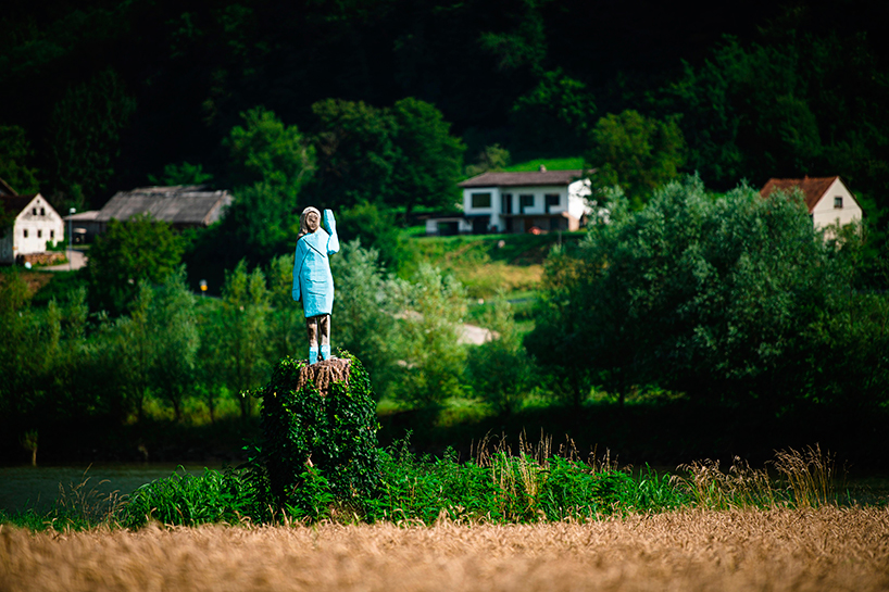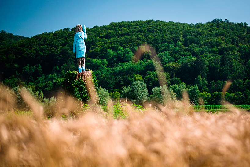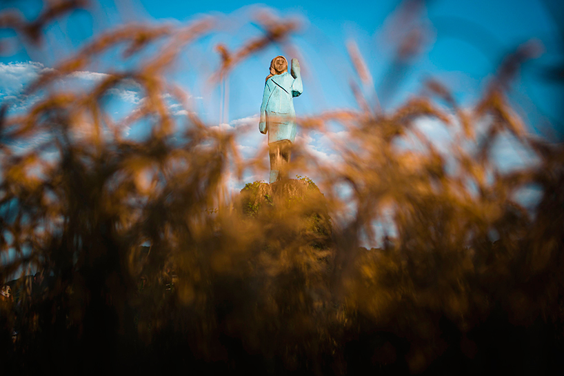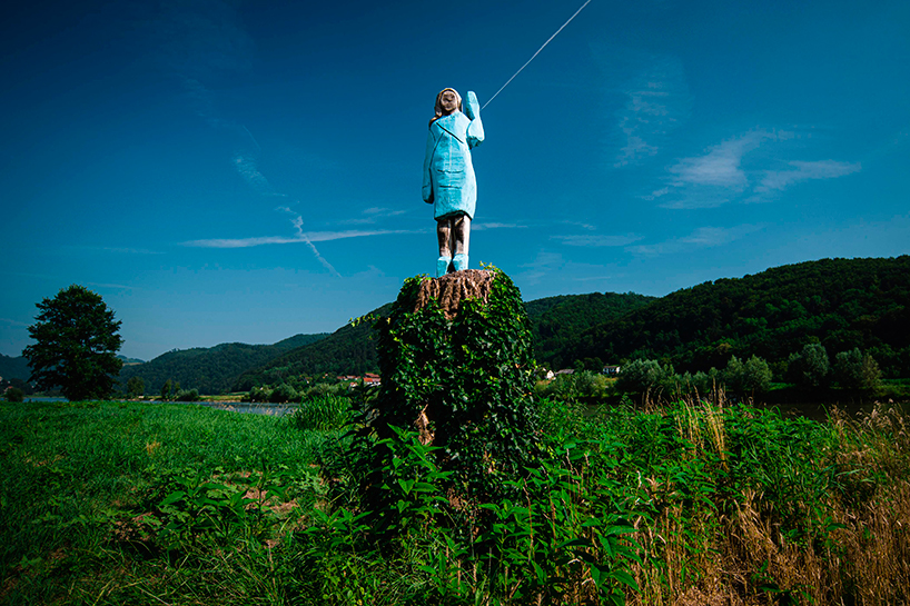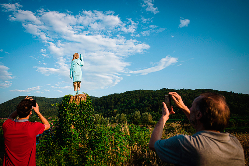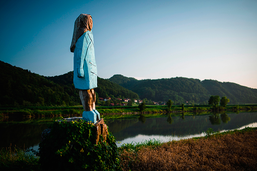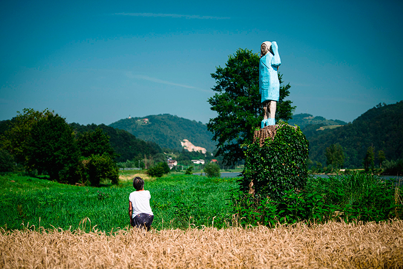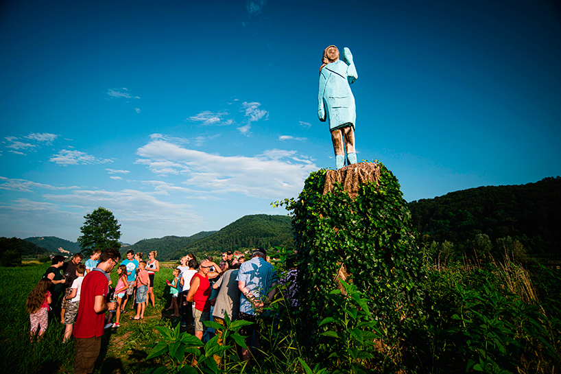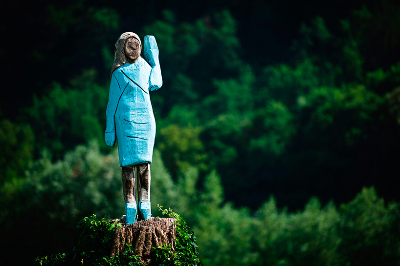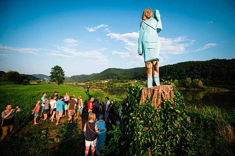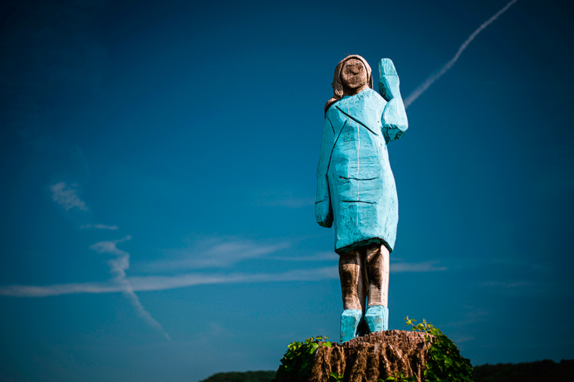 Hunermendê amerîkî Brad Downey, li bajarokê Sevnica yê Slovenyayê ku cihê jidayîkbûna wê ye, peykerekî ji darê yê Melenia Trump çêkir.