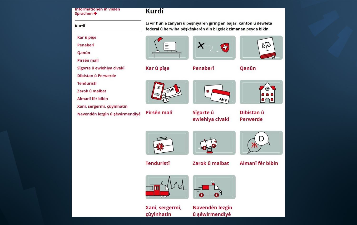 Bajarê Bernê niha bi 15 zimanan agahiyan dide xelkê xwe. Bajarê Bernê malpera xwe bi dozdeh zimanan nû kir û Rûsî, Ukraynî û Kurdî jî lê zêde kir.
