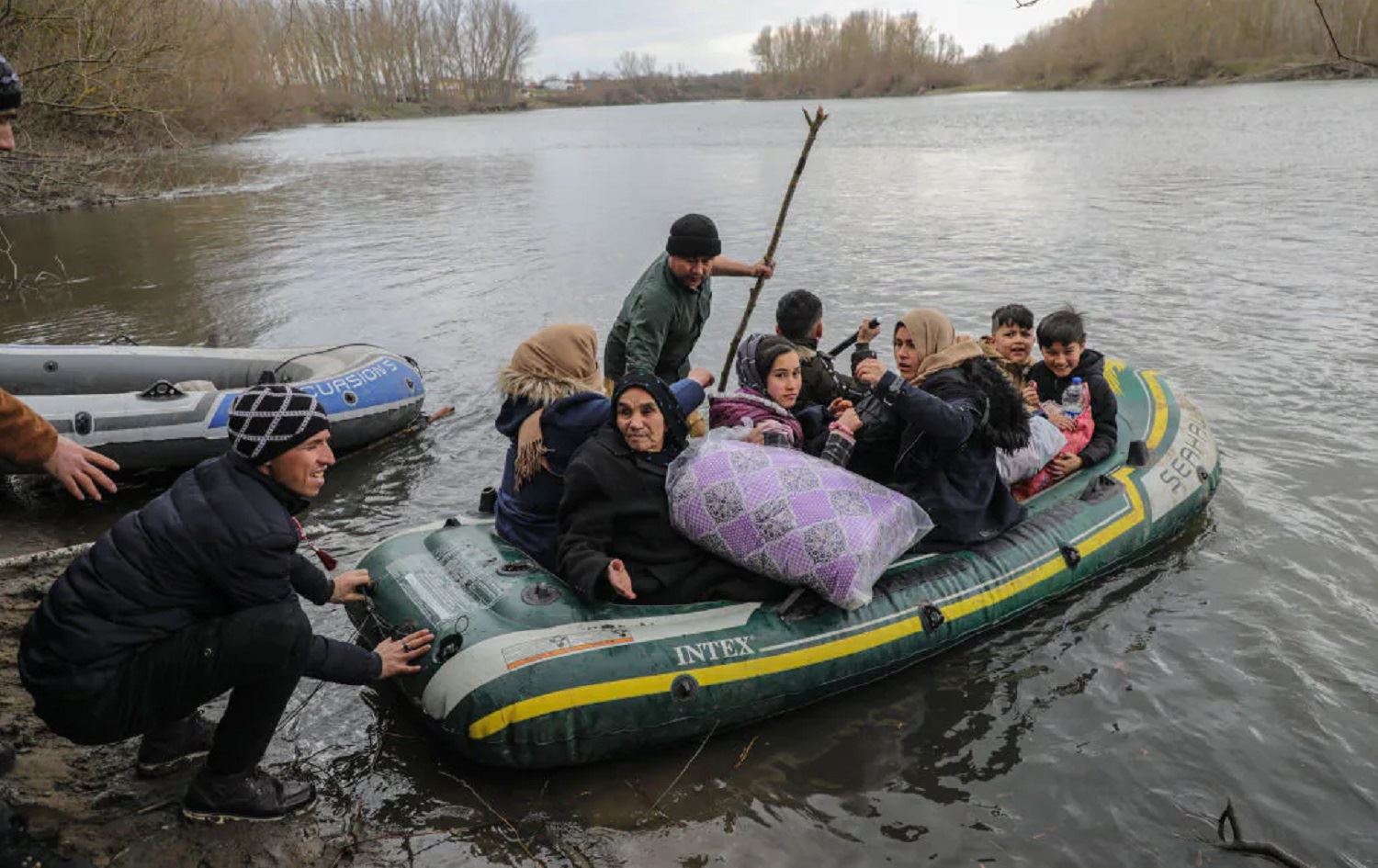 Li gor daxuyaniya polîs, koçber bo dema çend rojan li giraveke biçûk a ser Çemê Evrosê mabûn asê ku sînorê Yunan û Tirkiyê ji hev cuda dike. Yunan dibêje, ew cihê koçber lê mabûn asê, li derveyî serweriya wan e, lewra daxwaz ji Tirkiyê kirine daku “Bilez hevkariya pêwîst a wan koçberan bike.”