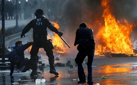Xwepêşandanên ku li dijî vekirina birca nû ya Bankeya Navendî ya Ewropayê li Frankfûrtê destpêkirin, veguherîn pevçûnan û neha niha bi sedan xwepêşandêr hatine binçavkirin, herwiha bi dehan xwepêşandêr û polîs jî birîndar bûne.