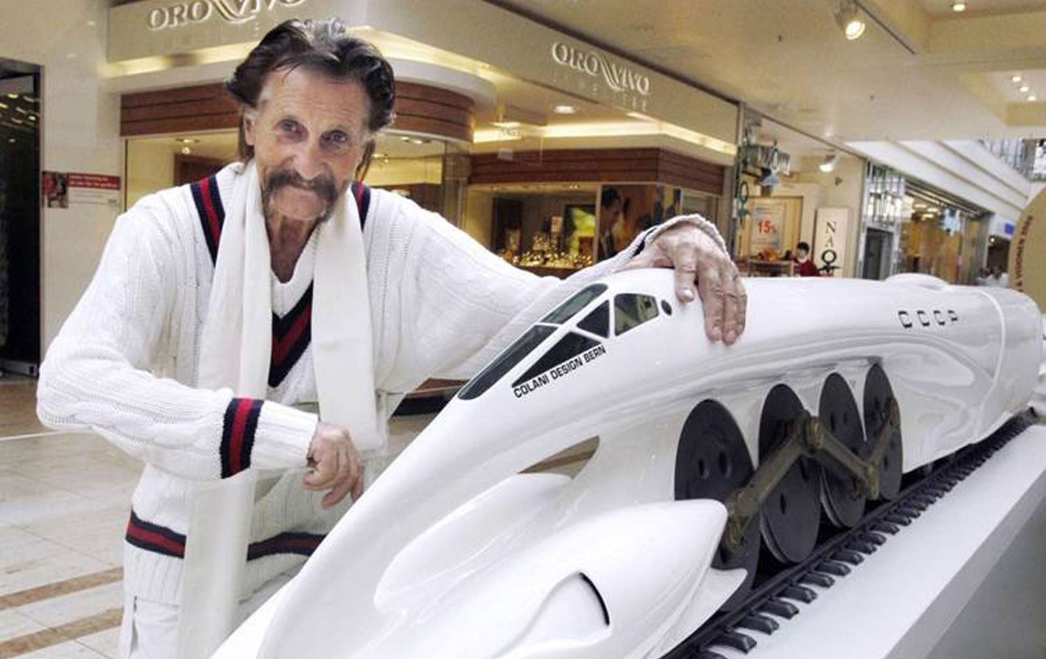 Luigi Colani her tim cilûbergên spî lixwe dikir û ew di sala 2004ê de li Davosê beşdarî Dîdara Aborî ya Cîhanî bibû.