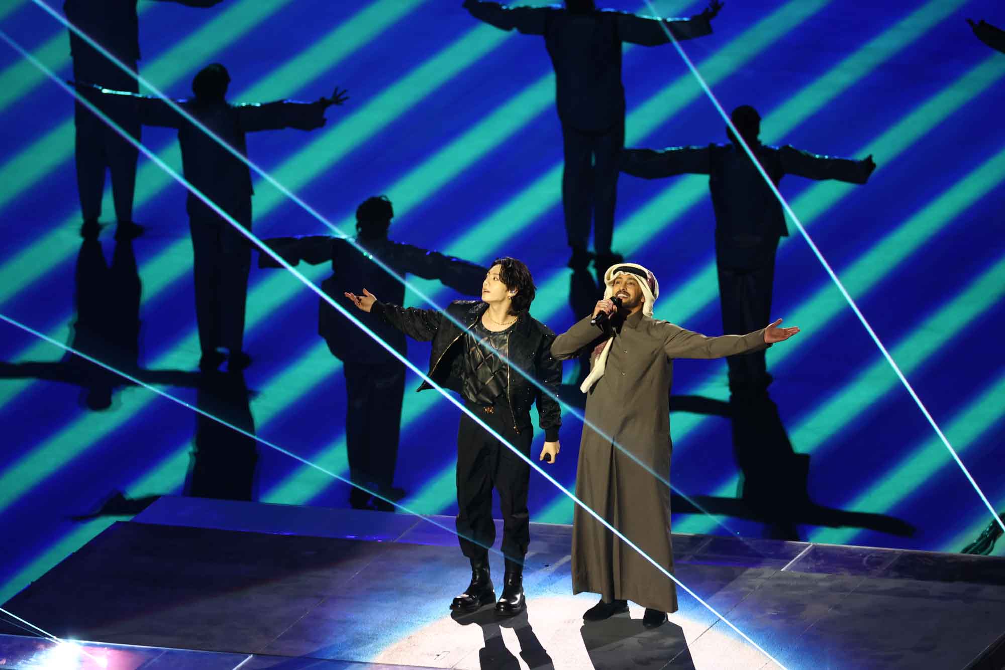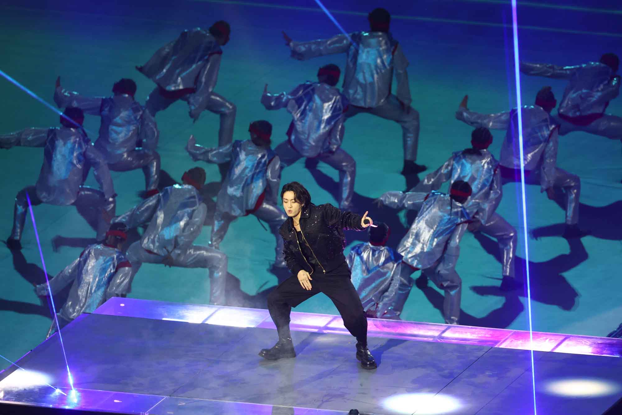Di ahenga ku 60 hezar alîgirên futbolê amade bûn de grûba bi navê BTS û aktorê navdarê ê cîhanî Morgan Freeman beşdar bû.