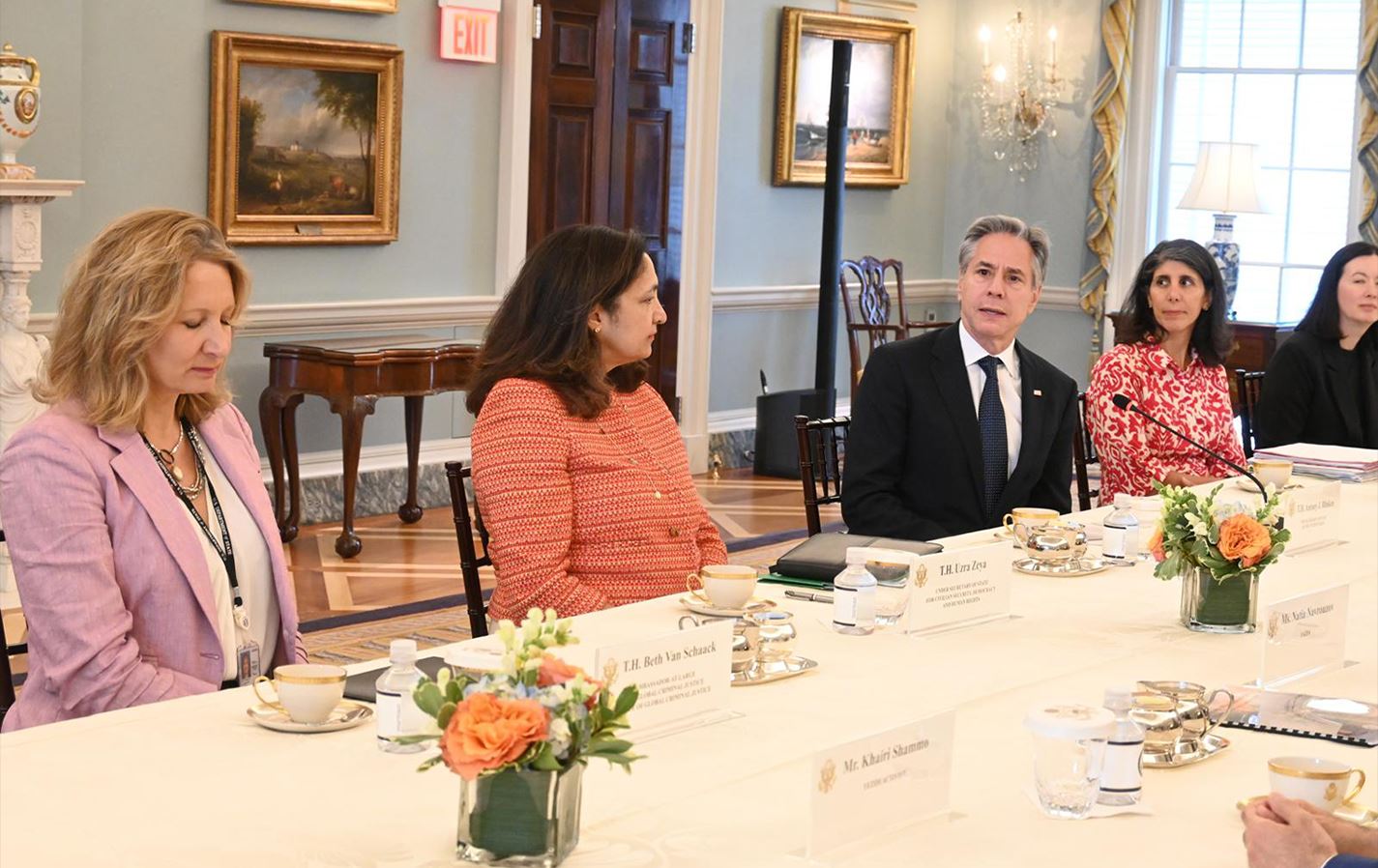 Wezîrê Karên Derve yê Amerîkayê Antony Blinken li Washingtonê bi nûnerên Kurdên Êzidî re civiya.