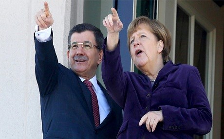 Navenda Nûçeyan - Rawêjkara Almanya Angela Merkel di dema seredana Tirkiyê de bo parastina penaberan piştgirî da çêkirina devereke aram li Sûriyê.