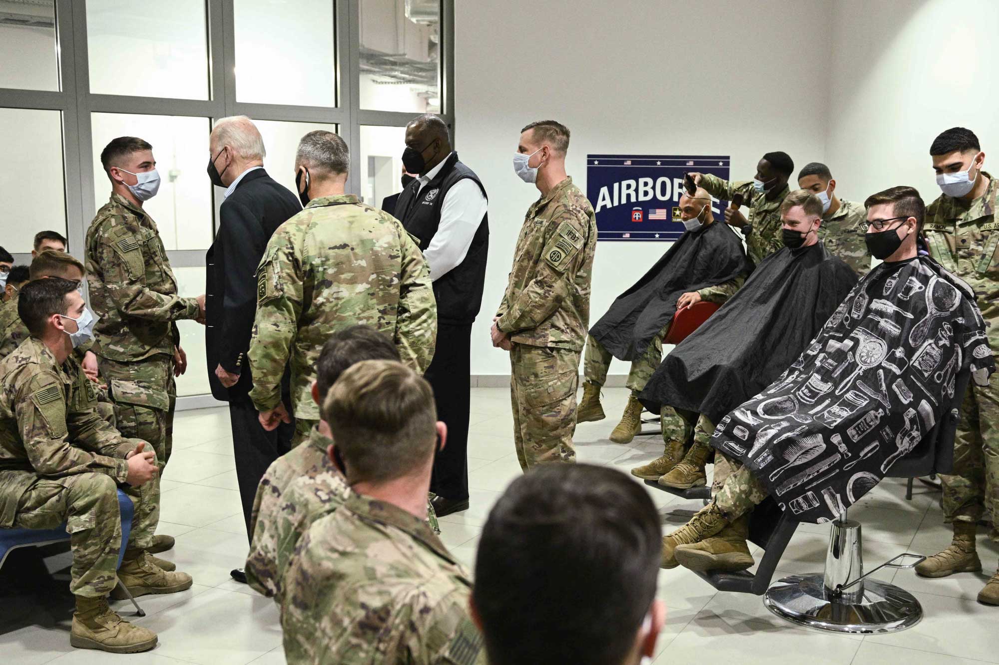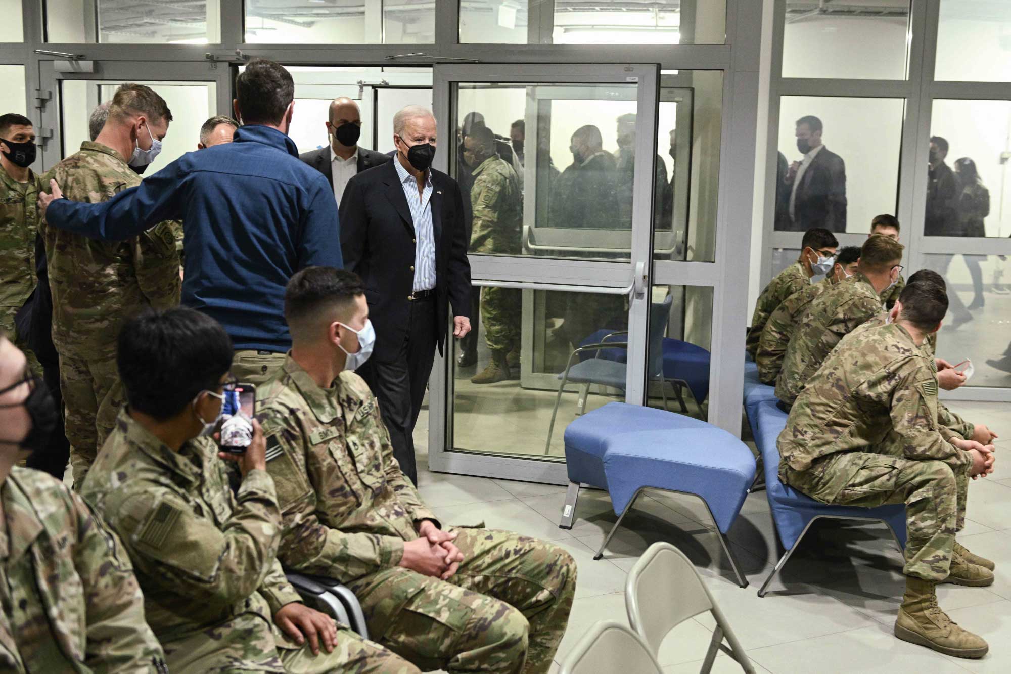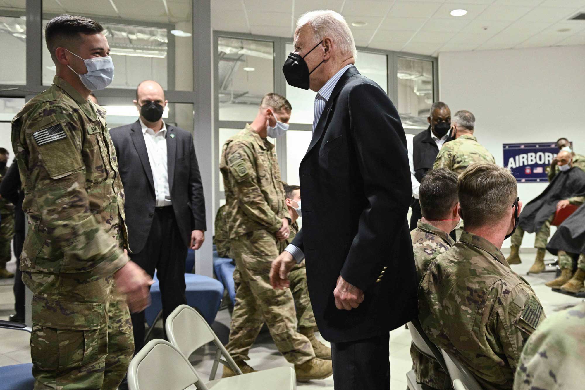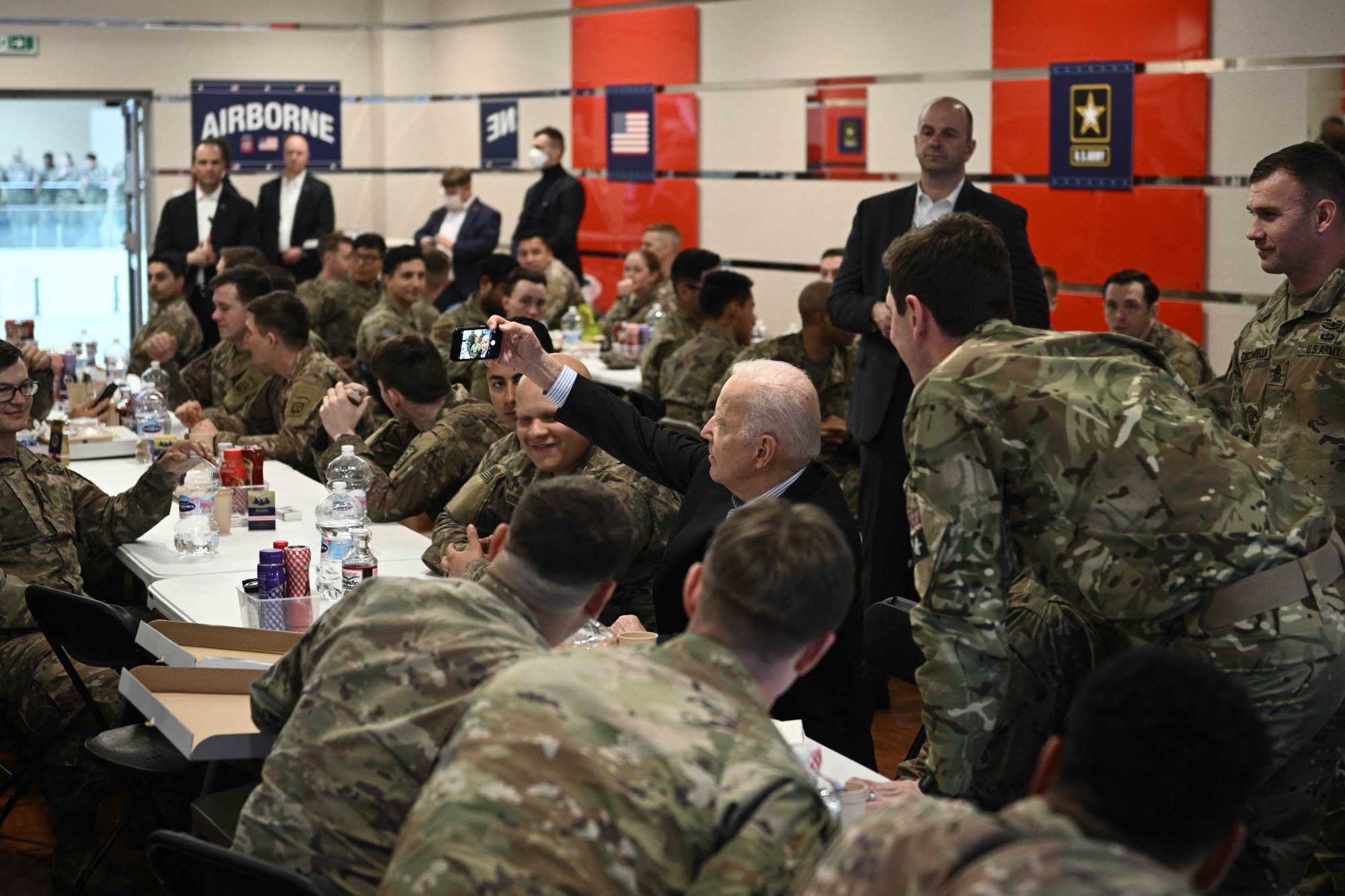Serokê Amerîkayê Joe Biden serdana baregeha leşkerî ya Rzeszow ya li başûrê rojhilatê Polandê kir. Joe Biden li wê derê bi leşkeran re li ser heman maseyê rûnişt û pîzza xwar. Piştre Biden axaftinek kir û ji leşkeran re got "parastina demokrasiyê erka we ye."